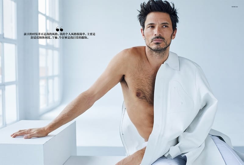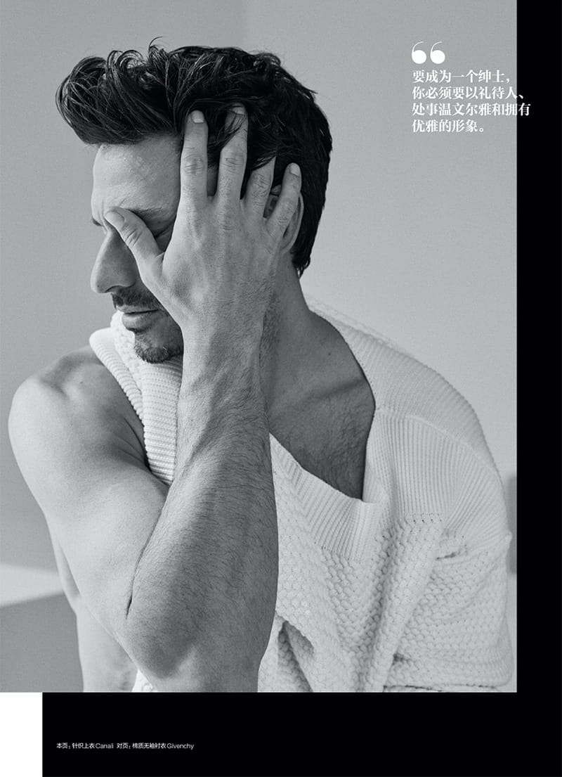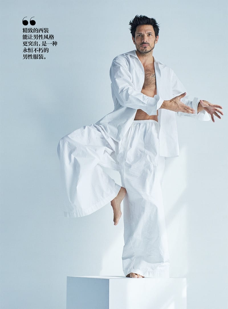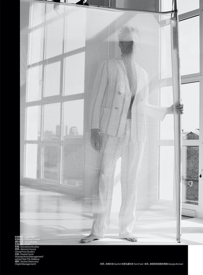 “Andres Velencoso’s latest story may be entitled “Temptations,” but the top model is ultimately a serene vision. He dons a white summery wardrobe for the pages of GQ China. Reuniting with photographer Sergi Pons, Andres is a vision in a designer wardrobe of sophisticated pieces. Uriel Mena styles the leading Spanish model in a selection that includes brands such as Givenchy, Loewe, and Dunhill.” – TheFashionisto.com