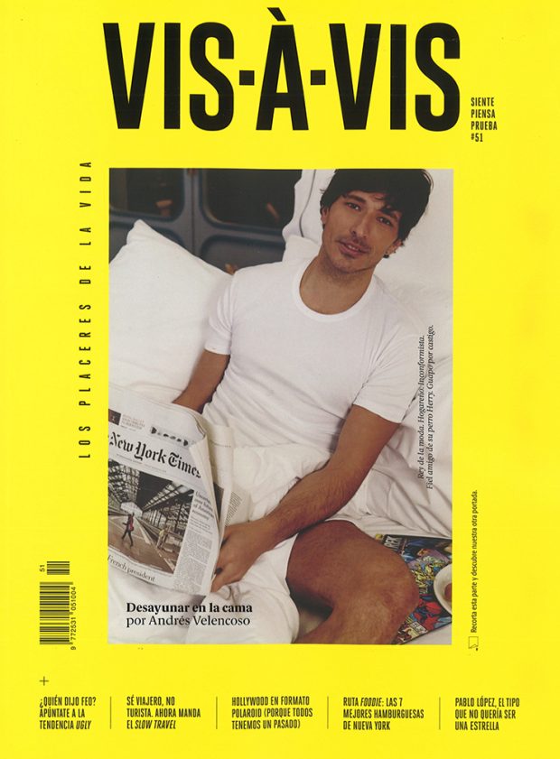 “Spanish supermodel ANDRES VELENCOSO SEGURA takes the cover of Vis-À-Vis magazine’s Fall 2018 issue. The supermodel was photographed for a relaxed session by photographer Borja de la Lama with styling from Arturo Argüelles.” – Malemodelscene.net