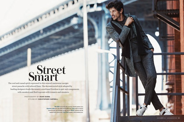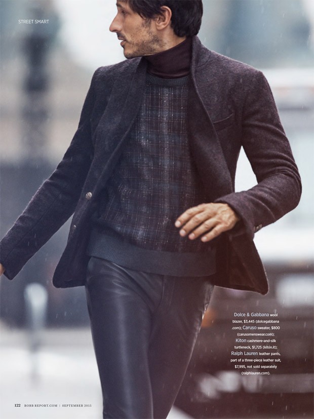 “Supermodel Andres Velencoso Segura takes the cover story of Robb Report‘s September 2015 edition captured by fashion photographer Dean Isidro with styling from Christopher Campbell. Grooming is courtesy of Riad Azar. Production by A+ Productions.