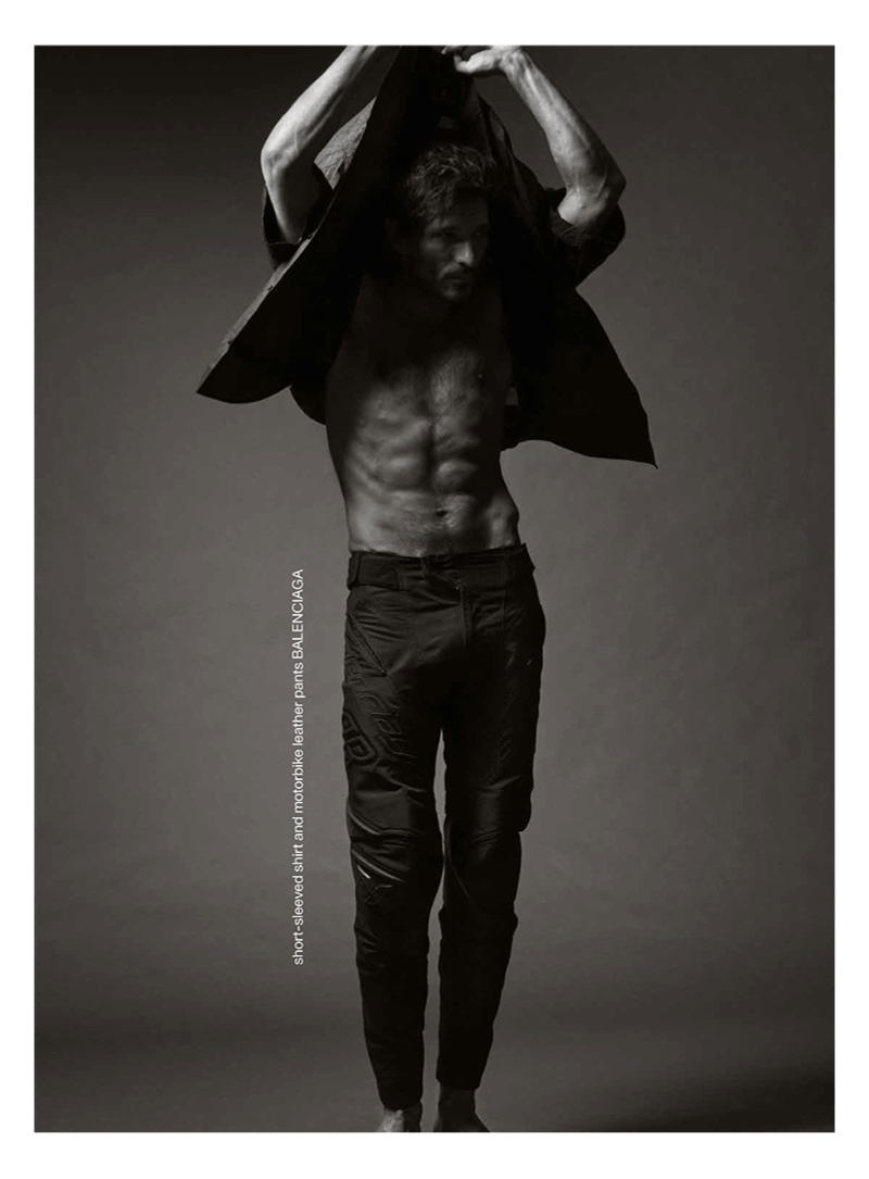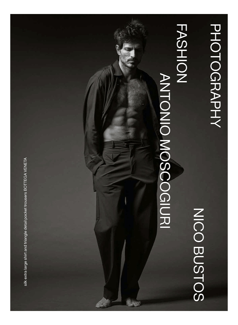 “Andres Velencoso is in fine form as he reunites with photographer Nico Bustos for a new story. Stripping down to his birthday suit, Andres sits for a striking cover photo for Les Hommes Publics. Inside the publication, Andres inspires in and out of dress. Antonio Moscogiuri styles the Spanish model in a varied wardrobe that highlights individual pieces such as the leather coat or a sharply tailored jacket. Pictured front and center, Andres dons luxury brands like Celine, Dior Men, and Dsquared2.” – TheFashionisto.com