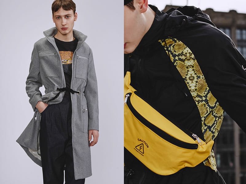“The Fall/Winter 2018 collection by Andrew Coimbra entitled POWER, explores the idea of electricity in its many forms. Drawing inspiration from technology, the dynamism of neon lights, sex and gender identity, the brand revisits staple pieces with a contemporary street perspective, offering new life to strong classics. With a heavy focus on outerwear and bold branded details, the new collection incorporates technical waterproof materials and electric grid patterned fabrics that offer the wearer complete versatility while exuding the ultimate cool found in urban swagger.