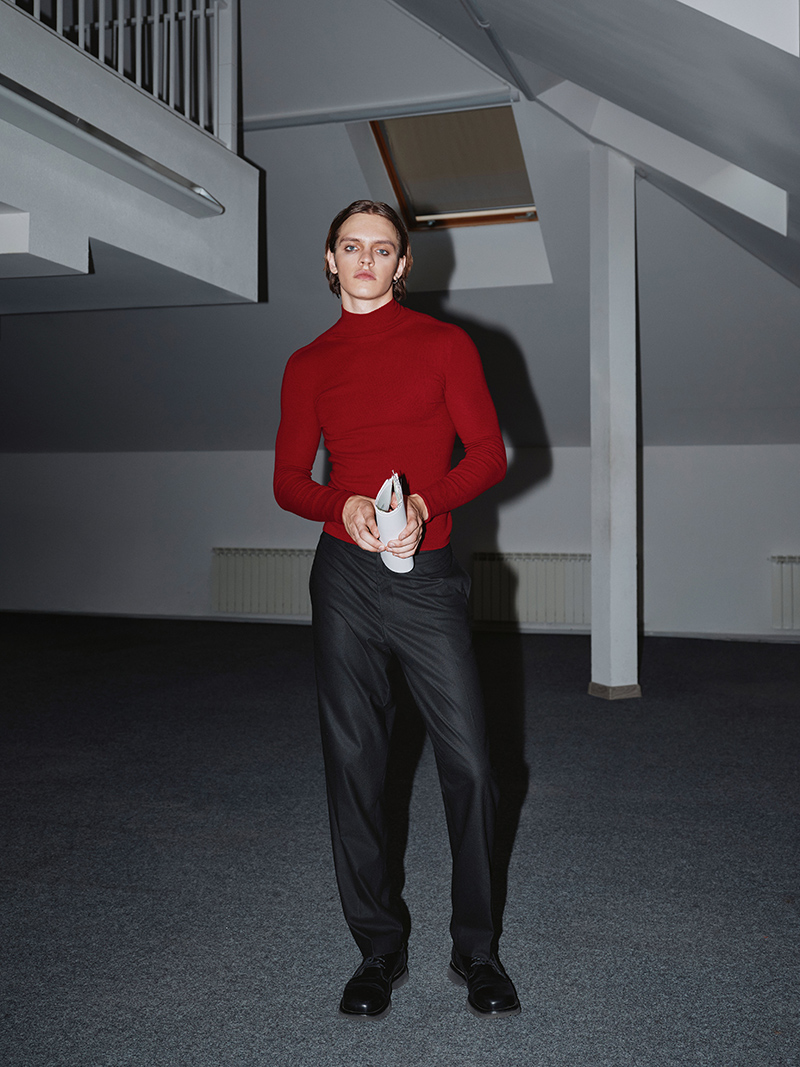INSOMNIA explores this duality through structured silhouettes, fluid fabrics, and sheer layers that evoke the space between waking and dreaming. The palette echoes the city at night: deep black, soft gray, and electric red flashes that cut through the quiet.
