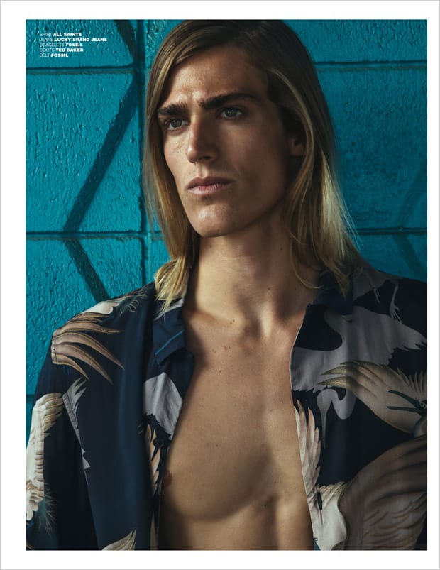 In charge of styling was Chad Tokunaga, who for the session selected looks from the likes of All Saints, Lucky Brand Jeans, Fossil, Ted Baker, Tom Ford, Diesel, Adidas, Calvin Klein, Salvage Public, and Nixon. Photo Assistance by Ryan Foley.” – Malemodelscene.net