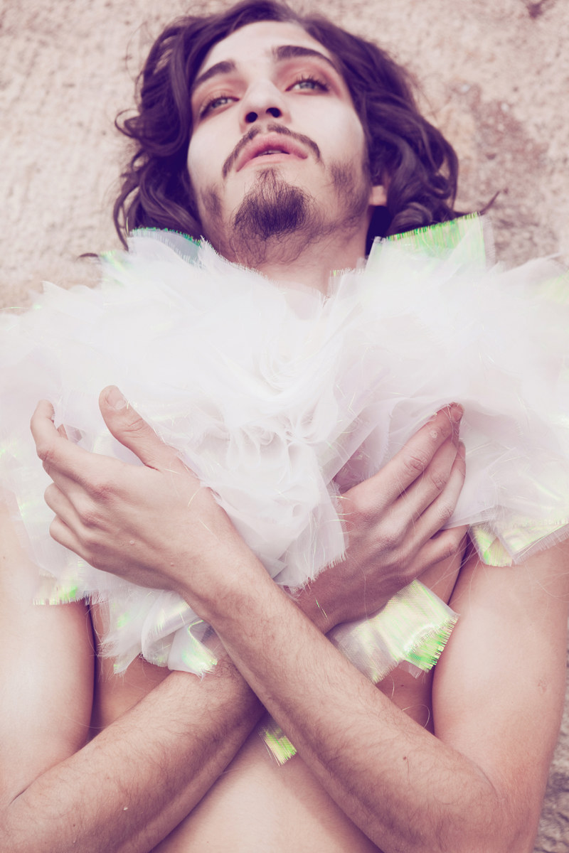 How to Disappear–Anthon Wellsjo (Ford Europe) and Andres Risso (Bananas) fade into a world of their own for a new beauty shoot lensed by Michelle Du Xuan. Captured in rosy hues, the stunning duo wear accessories fashioned by stylist Gaelle Bon. / Makeup by Min.K with hair by Yu Nakata. Courtesy of – thefashionisto.com