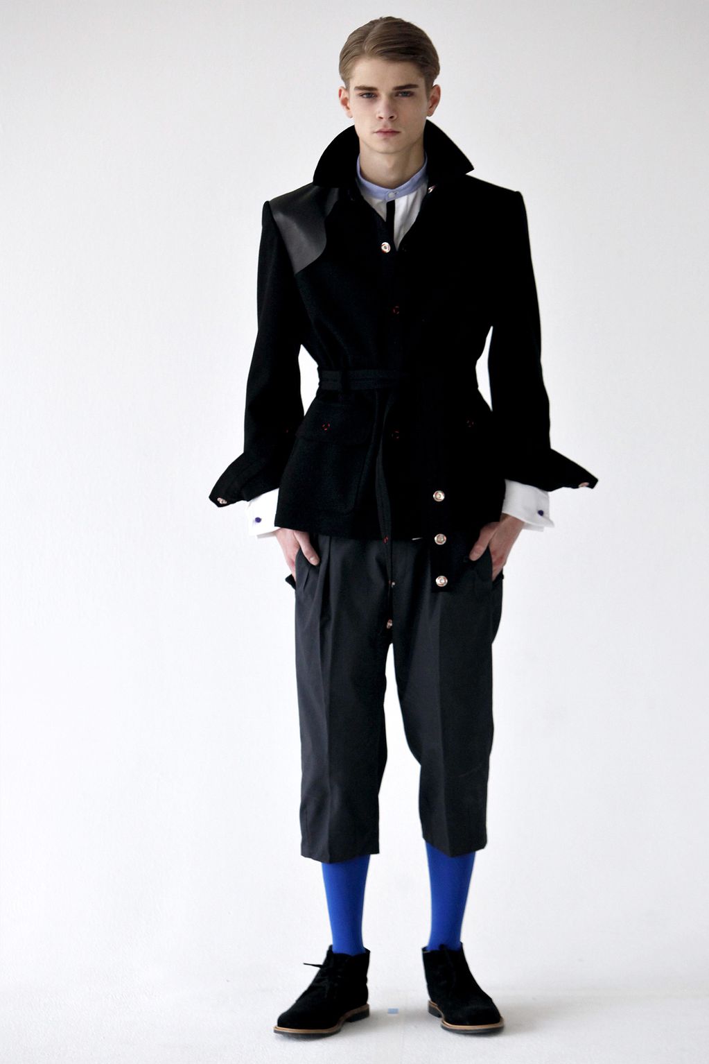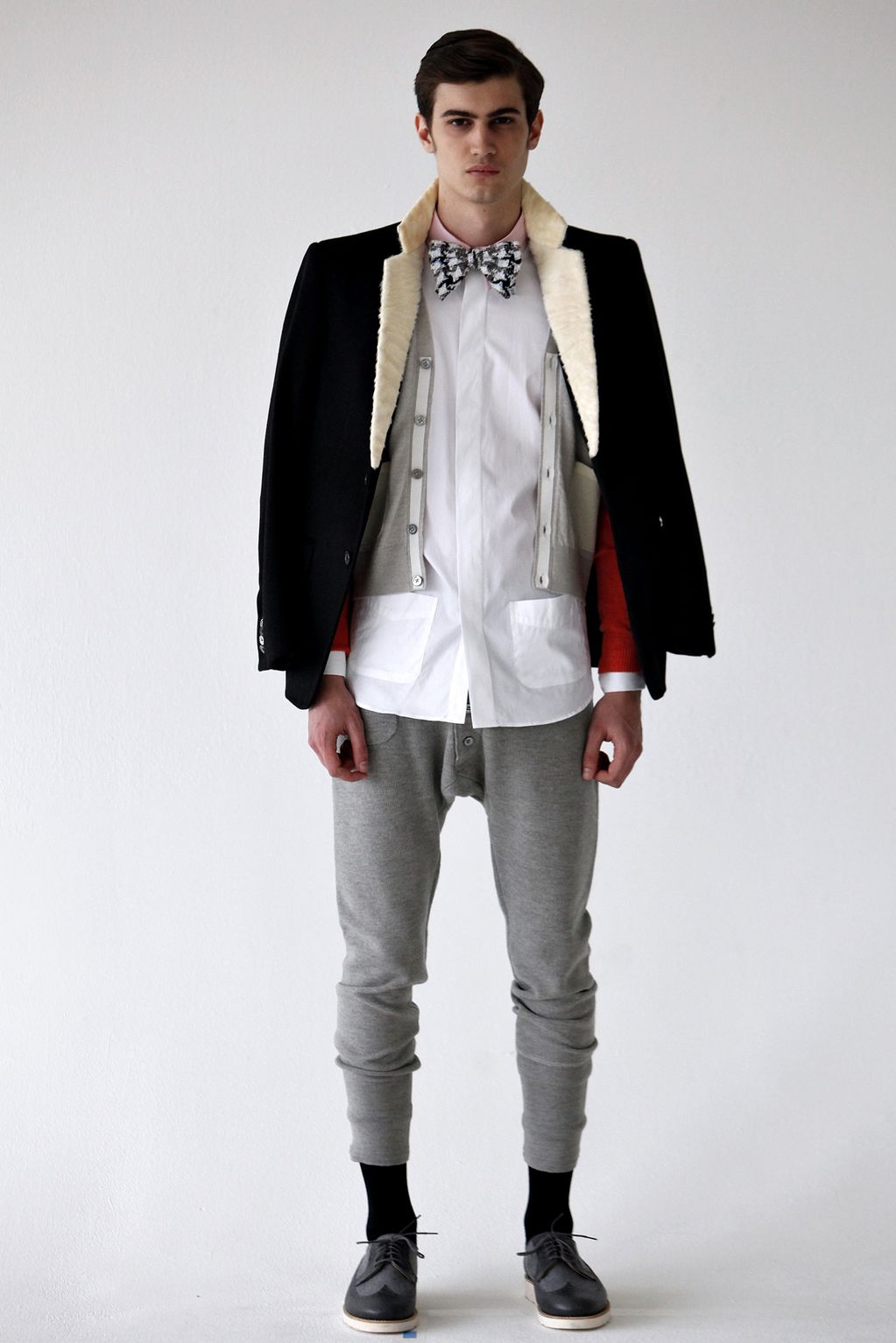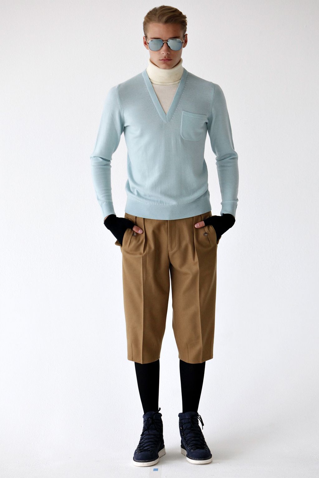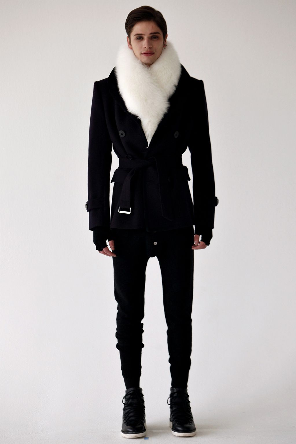 Antonio Azzuolo’s boxy silhouette for Fall/Winter 2011 breathed fresh air into the collection that featured rolled up pant legs, as well as cropped pants, and some sharp cuts. There were some military references thrown in as well, like a black coat with a leather patch on the right shoulder that was paired with what look likes britches, or severely cropped trousers. Also worth noting were the big furry gloves and lots of fur and shearling, seen mostly as part of coat collars and lapels. Courtesy of hommemodel.blogspot.com