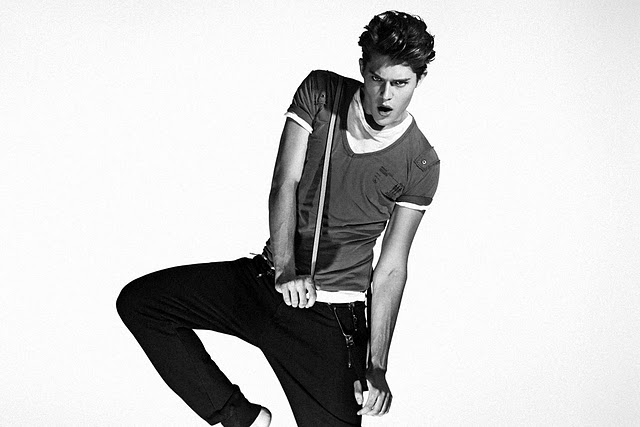 Elite beauty Cesar Casier works the camera for photographer Joseph Cardo as the face of the new Antony Morato Spring/Summer 2011 campaign, Back in The Days. Courtesy of – Homotography