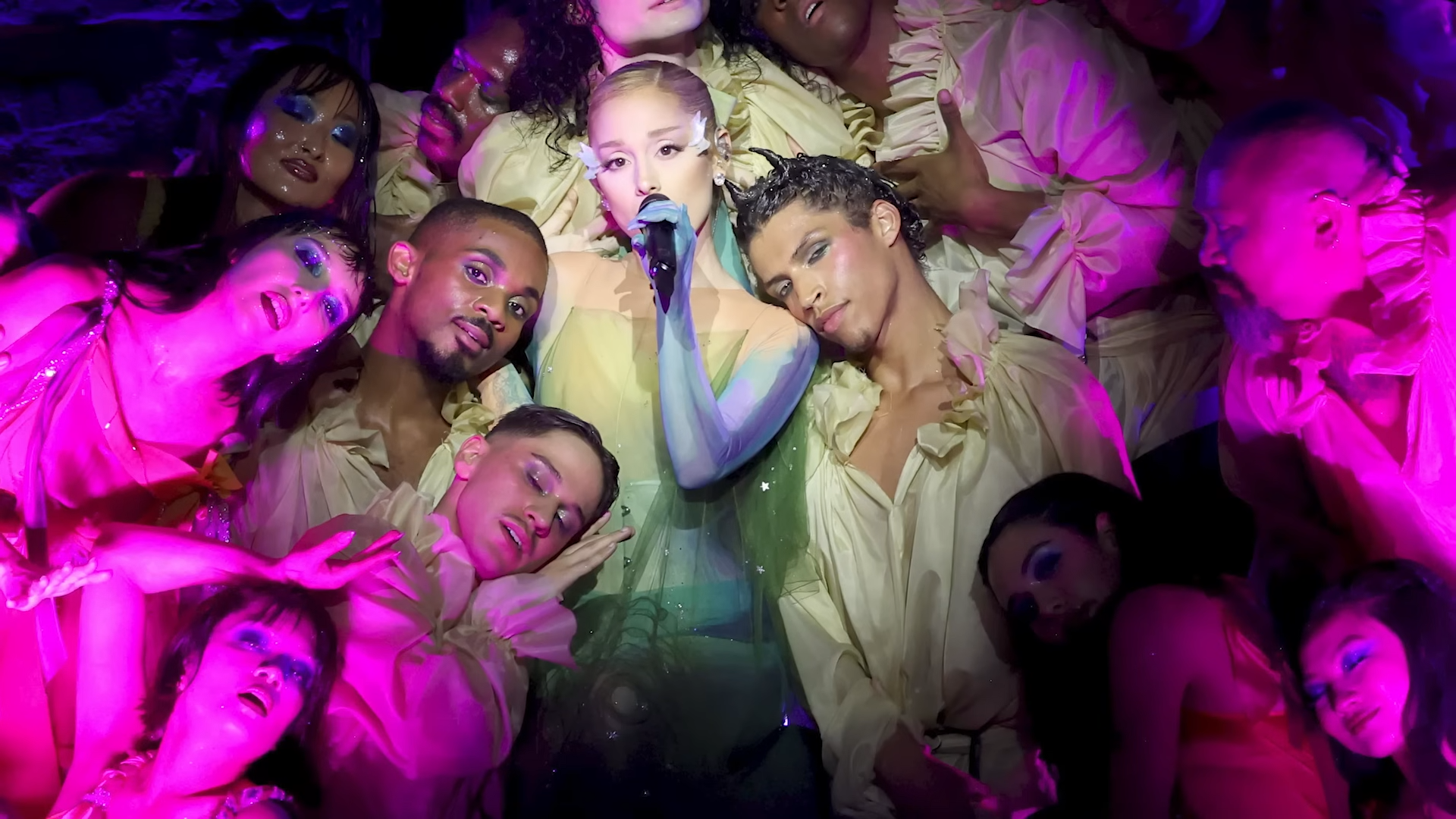 Ariana starts by revisiting the early silhouettes that defined her rise — the baby‑doll dresses, the sky‑high ponytails, the sugary‑sweet color palettes. She laughs at a few choices (“It was giving… choices”), but she also honors how those looks built the foundation for the artist she’d become. Her México and Latino América promo eras get a special nod, especially the outfits fans still recreate on social media.