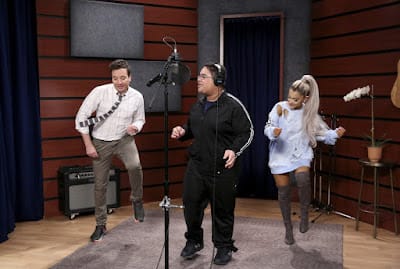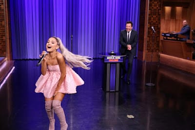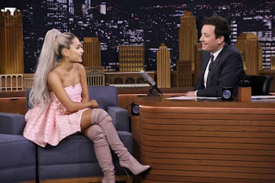 Jimmy Fallon also shined a light on the fact that this is Ariana’s very first live TV interview in over a year since the horrific fatal Manchester incident.