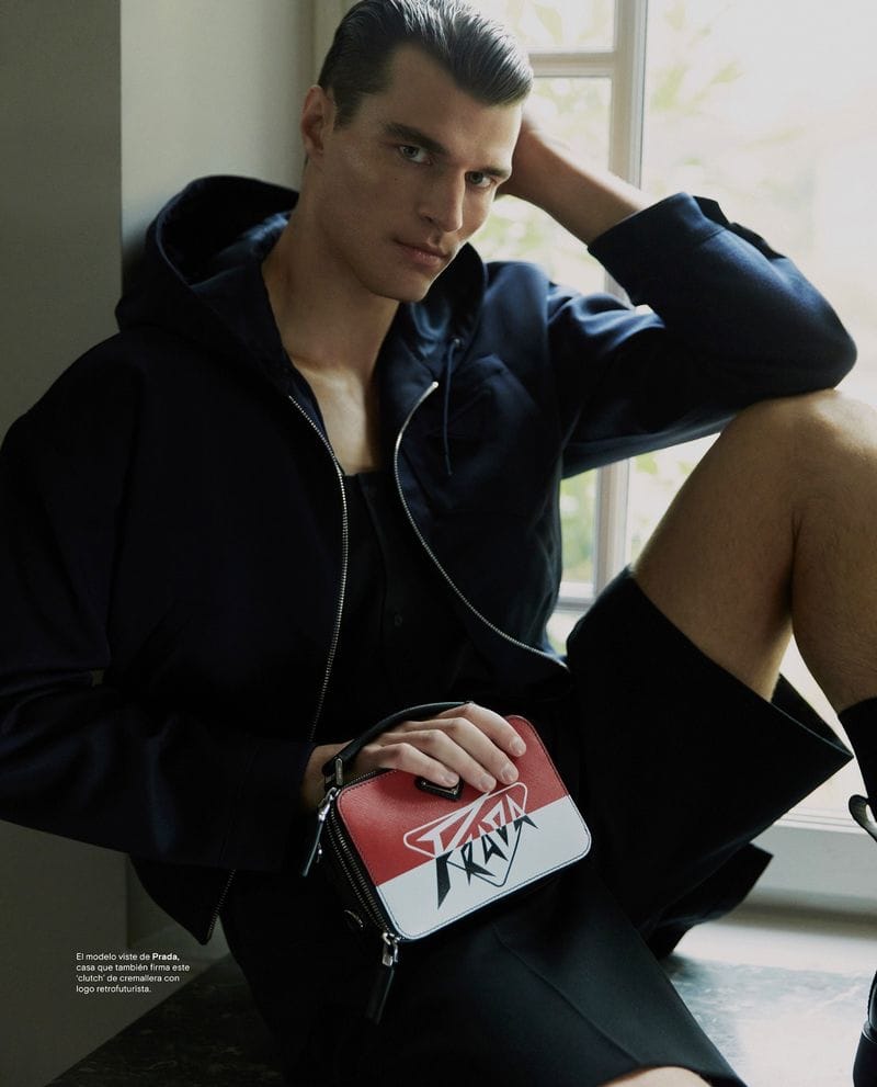 “Arran Sly embraces eclectic spring looks as he takes to the pages of Icon El País for February. Jumbo Tsui photographs Arran for a story that places the spotlight on statement bags for the season…