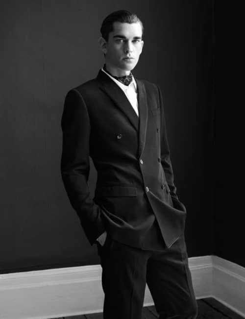 Mixing all sorts of styles, the editorial is photographed by Horst Diekgerdes and styled by Bryan McMahon. The lengthy title makes sense when you know that in addition to models, the editorial features boxers, fashion editors, actors, opera stars, etc… This includes George Barnett, Olly Alexander, Connor Donlon, Charlie Casely Hayford, Brad Pickett, Matthew Stevenson Wright, Ivan Putrov, David Bradley, and David Courts. -Homotography