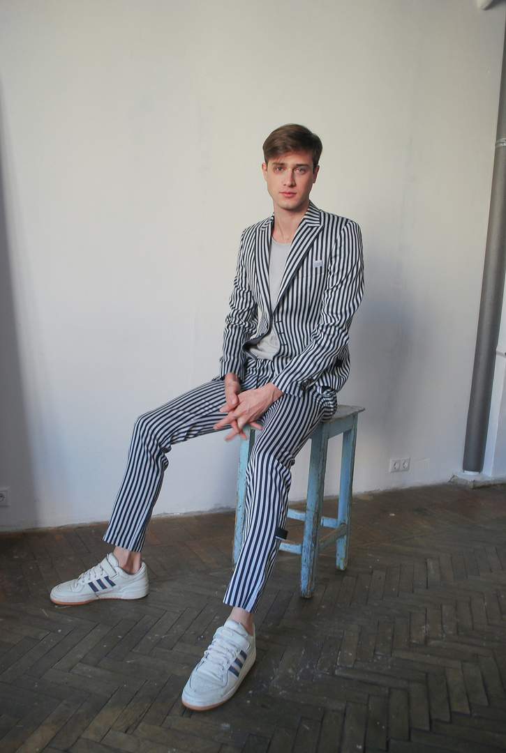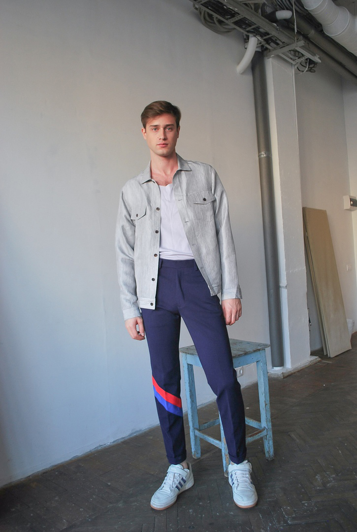 Artem shares his thought behind the collection: “Well, it’s very relaxed, I was inspired by street football and basketball, backyards in Shanghai and Moscow. And, since it is quite basic, I had a lot of fun with stripes and lampasse in primary colors of international flags. Lastly, I haven’t forgotten about suits, my favorite is the red denim one!”
