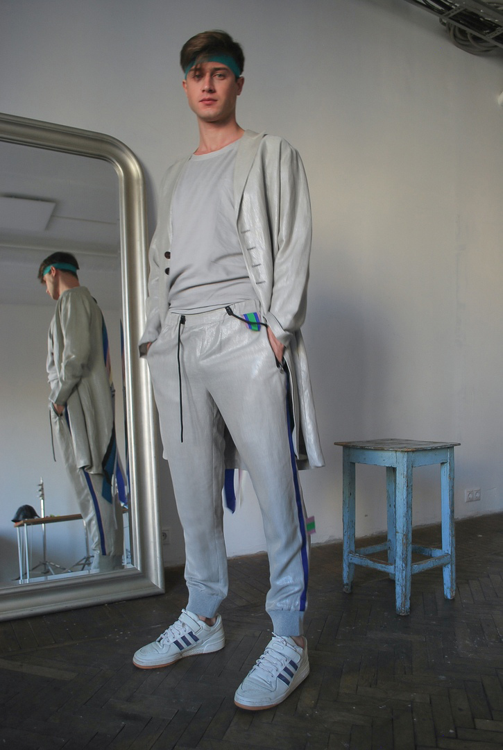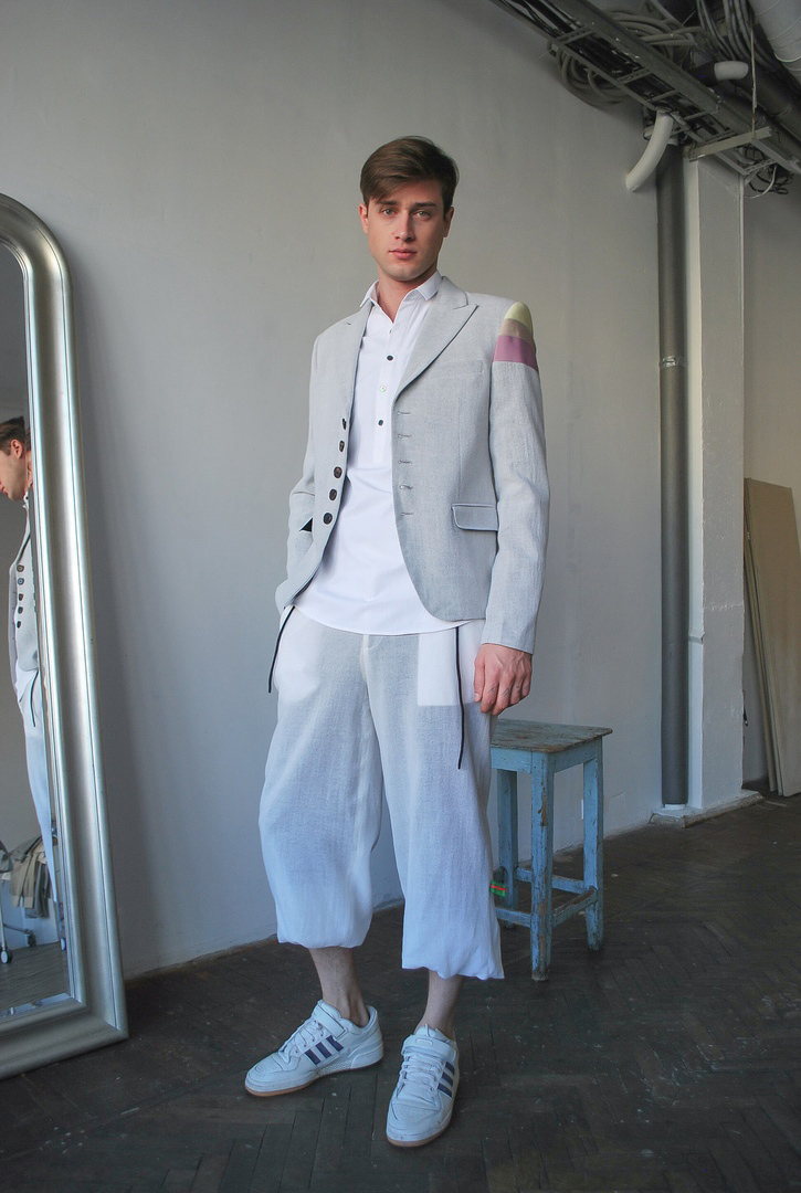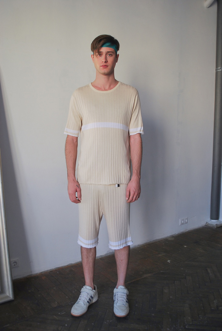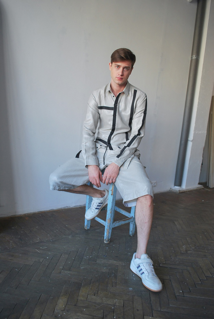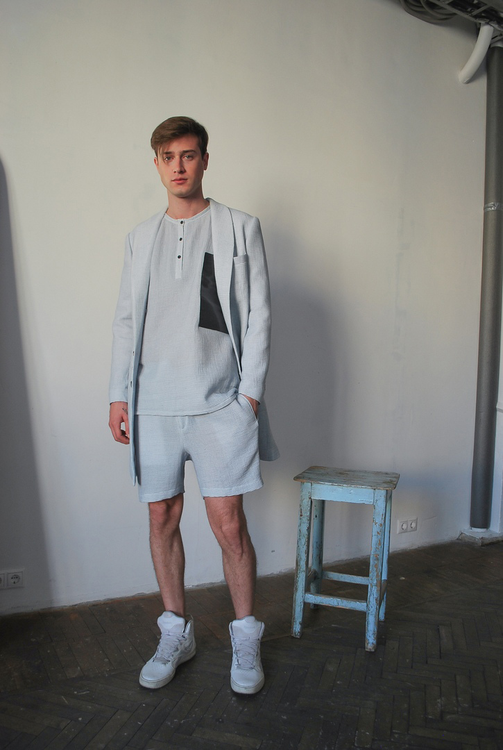 Artem manages to find similarities in different cultures of two metropolises: Shanghai and Moscow. He explores sportswear and business attire and creates a perfect combination of both. Simple elegant shapes of classical suits complemented by comfortable raglan sleeves and all kinds of stripes applique. The collection is based on casual and sport chic style and includes light suits, t-shirts, long sleeves and shorts. As always, Artem Shumov uses natural fabrics: Japanese cotton, wool, silk, lyocell in light color scheme with shades of beige, white and gray.