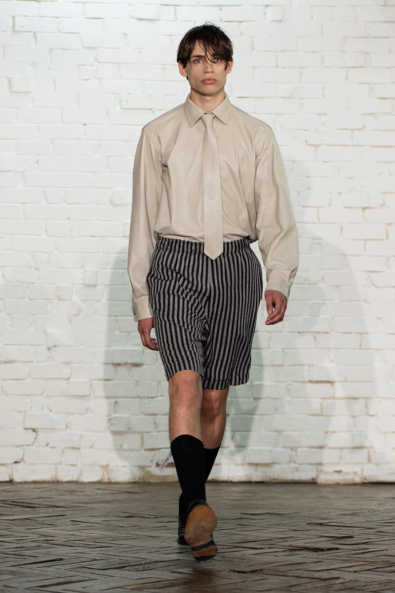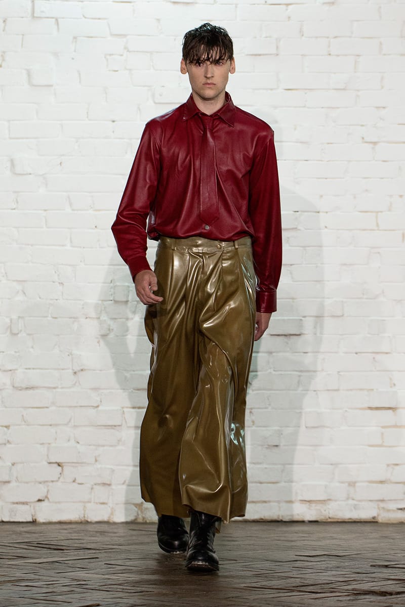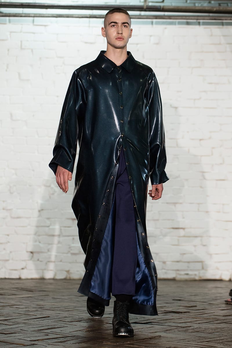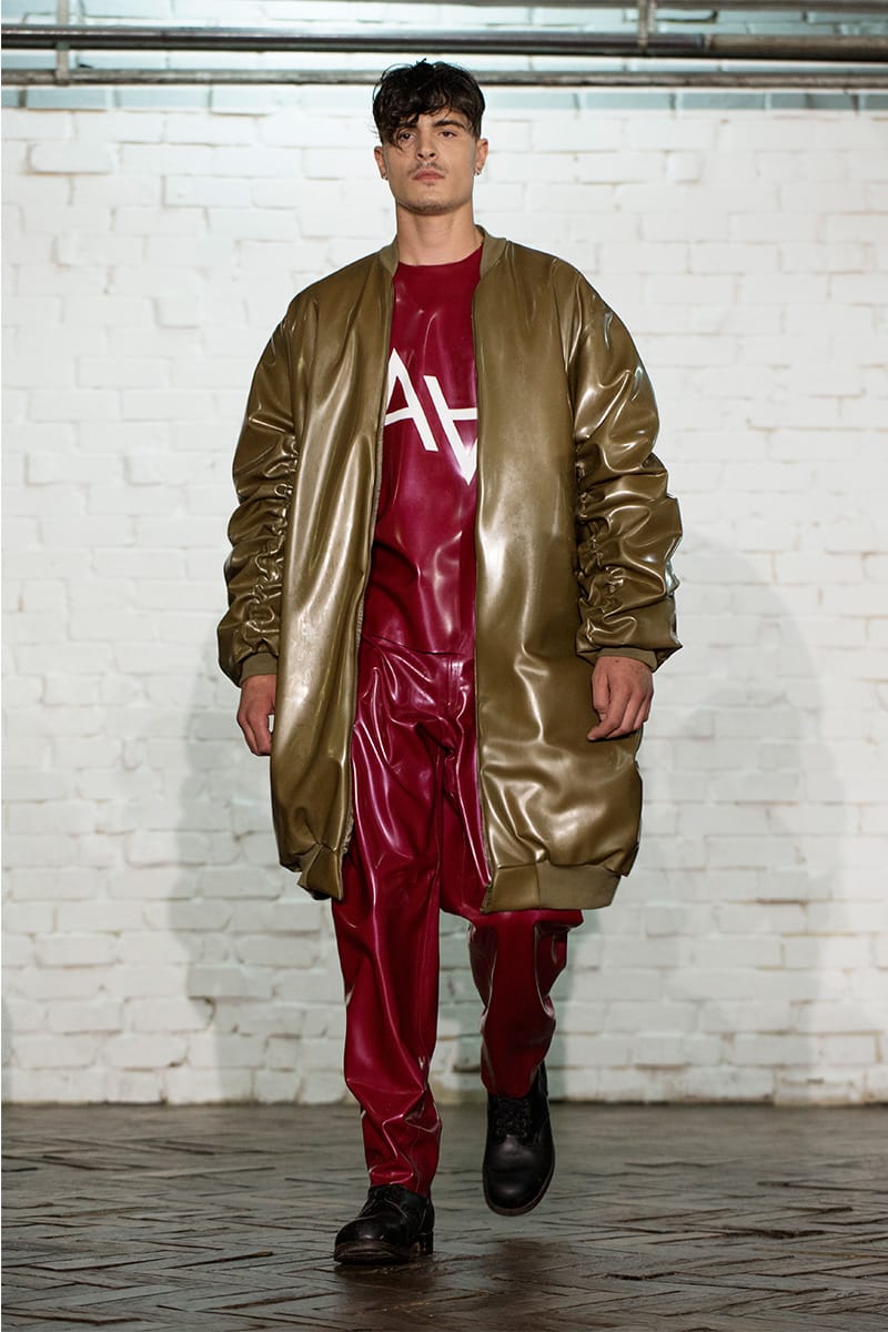 “In the same way, Arthur puts into perspective the subjects associated with fetishism: latex, leather, spandex and transposes them in a classical men’s dressing with basics pieces of sportswear and tailoring.” – FY Magazine.es