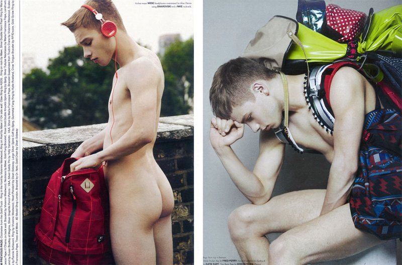 Mr. Accessory–Select up and comer Arthur Olecki stars in a cheeky story for Husk’s fall issue. Photographed by Kim Jakobsen and outfitted by Kim Howells, a scantily clad Arthur revels in select pieces from Christopher Shannon, Matthew Williamson and other designers. Courtesy of thefashionisto.com