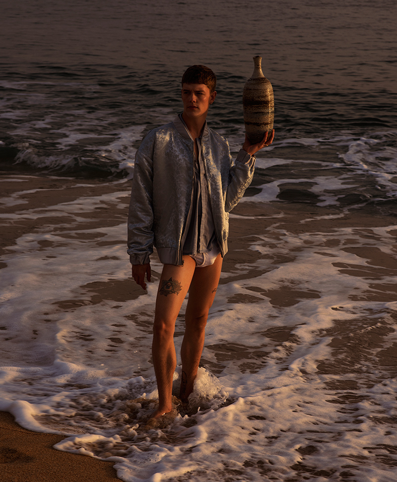 “Tomas Jaramillo shot by Felipe Gallego and styled by Ana Cristina Diaz with pieces from Pregadeus, in exclusive for FY Magazine! Online.” – FY Magazine.es