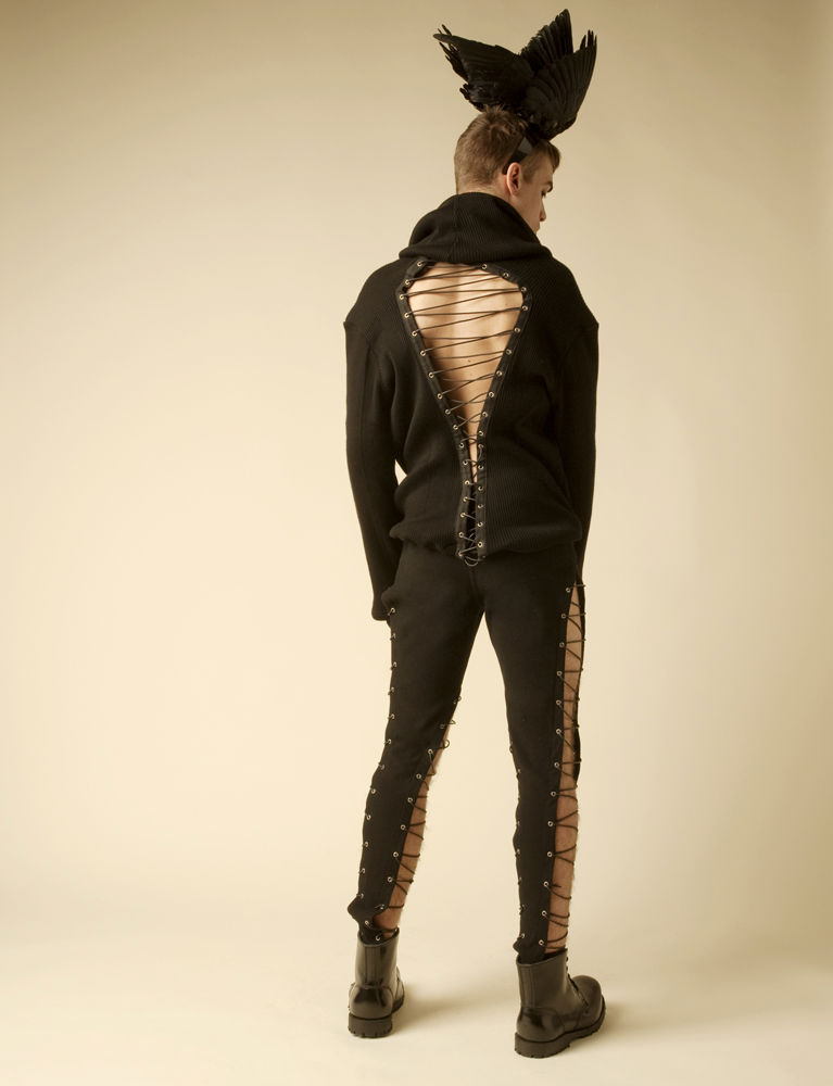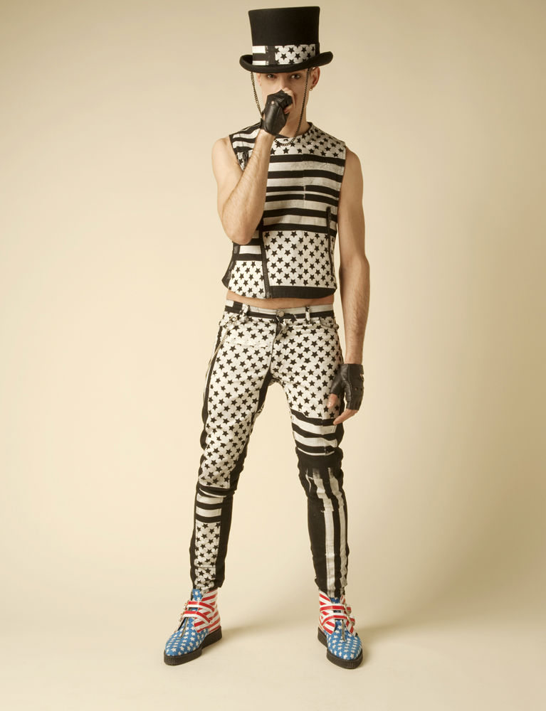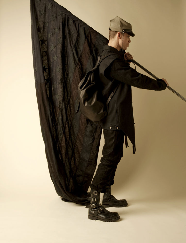 Uncle Sam–Honing in on Civil War-era America, Asger Juel Larsen creates a perverse Americana mode for the upcoming fall season. Armed with a Gothic vision and a state coming apart at the seams, the new collection delivers fashions with a dark humor. From structured outerwear and ready-to-layer separates to spiked chaps, Larsen embarks on an intriguing tale of self-discovery. Courtesy of – thefashionisto.com
