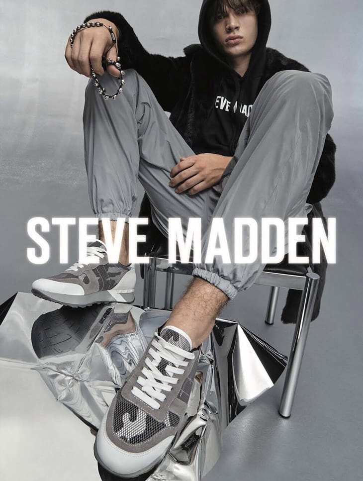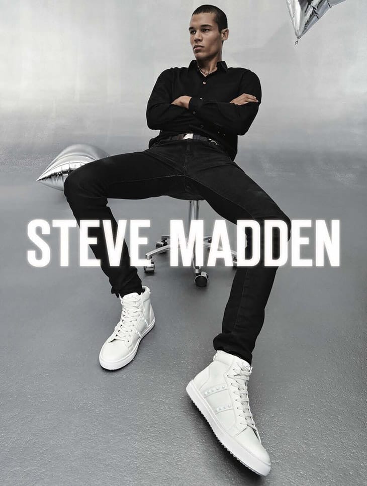 Models Ashton Smith and TJ Moore star in Steve Madden‘s Holiday 2019 campaign captured by fashion photographer Claudia Knoepfel. In charge of styling was Lauren Rosenfeld, with set design from David De Quevedo, and creative direction by Matthew Ellenberger.