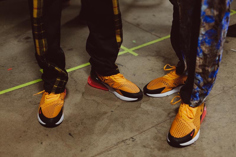 Bright pops of colour seen on ‘dad-style’ trainers, shirt collars, jackets and trousers brighten up the whole collection, nodding to the brand’s quirky and fun aesthetic.