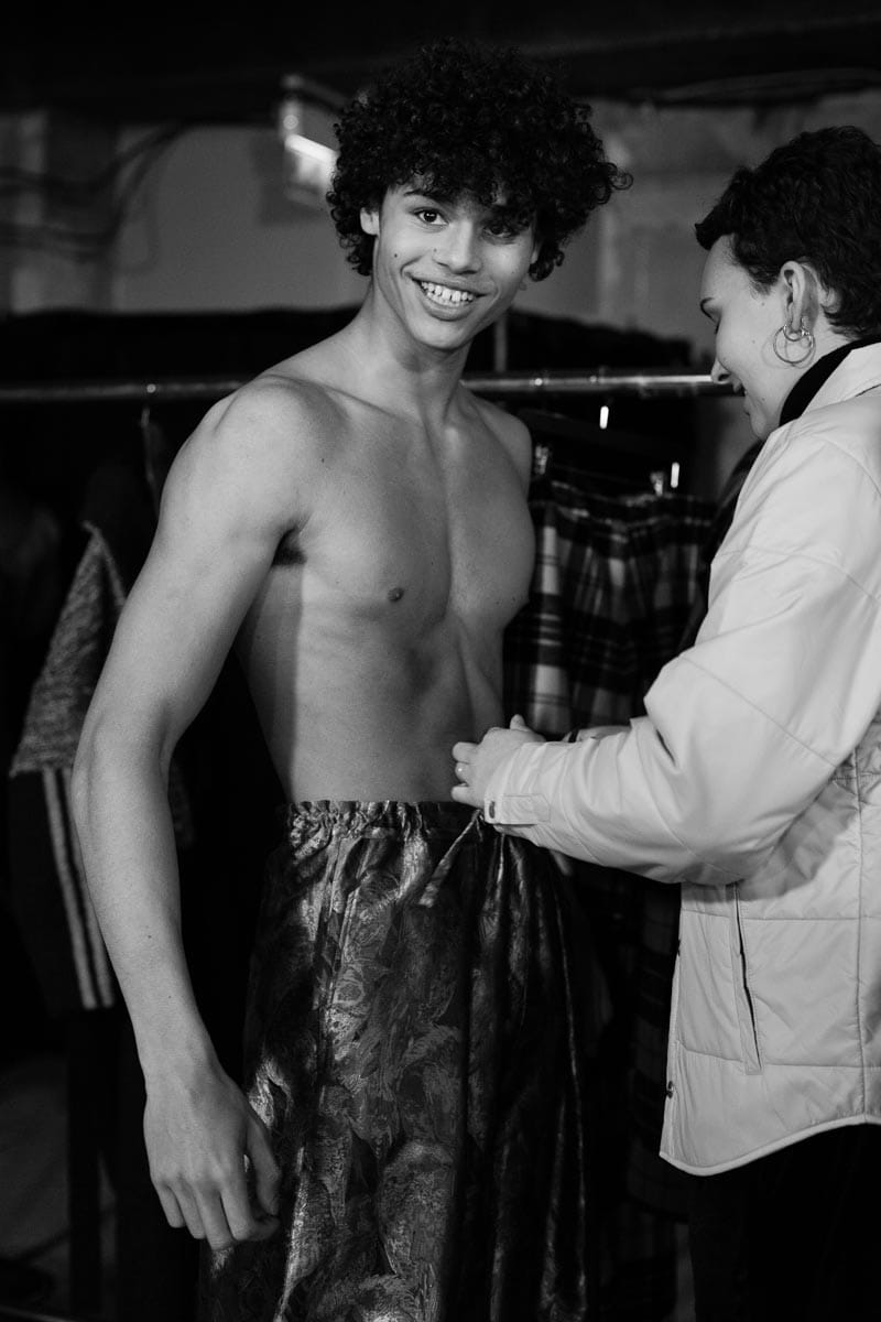 “Cowboys hats, bright coloured coats, wide-legged trousers and checks are all essential parts of Astrid Anderson‘s collection. Fabrics and pieces flare and are oversized, nodding to the brand’s ethos – comfort, casualwear and sports-inspired.