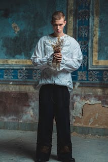 In their lookbook, shot by Roman Erofeev and styled by Oksana Markina, ODOR writes of salad days, infantile desires, and the dreams of youth. The history of the Great War and the romance of the war years, love and tragedy. The prototype for the hero was not chosen by chance, but was taken from a real person – a young Channel Islander, whom war had taken unawares into the very epicenter – into the heart of Europe. His carefree world was destroyed, but his memories are vividly documented in his letters home. In them, he describes the romance of the military life, day to day existence on the front line, and he also indulges his memories, and his nostalgia for home, whilst recalling love, and his carefree childhood. He documents his life, recording extracts from his recollections on scraps of paper, looking to leave at least some memory of himself behind. As in Jackson’s film the postcards and letters, free of censorship and with a whole sense of reality, form into a unified narrative. The brand tells of that time, and of an enormous tragedy, which has been undeservedly forgotten.