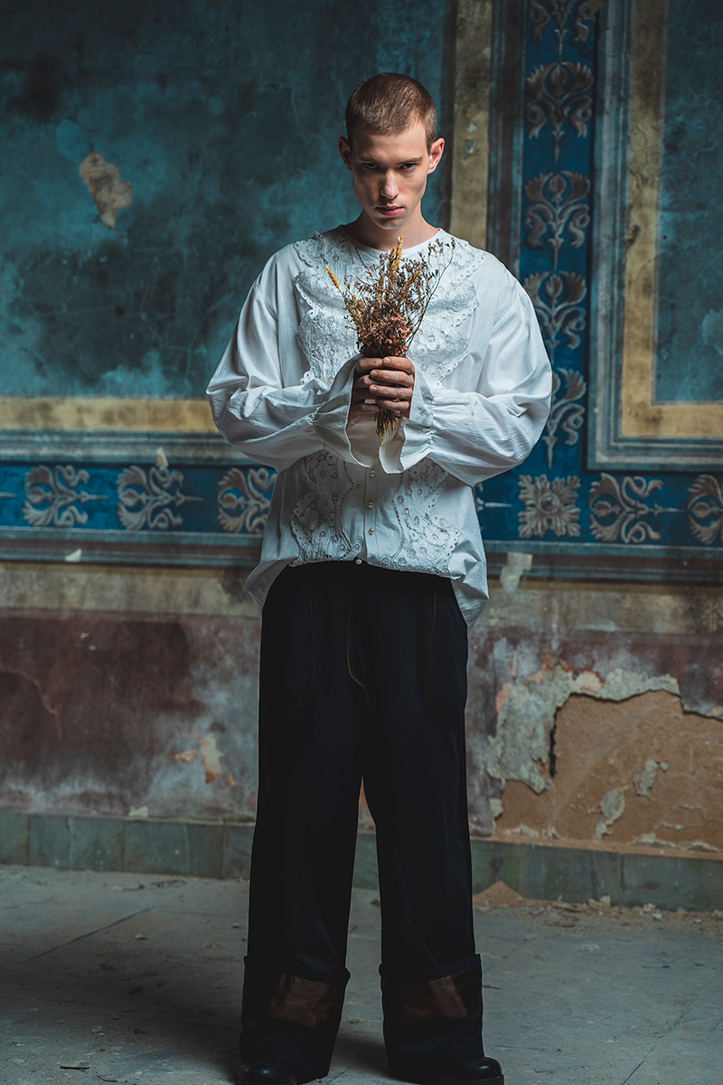 “The new SS20 collection by Atelier ODOR is inspired by purity and youth in the face of cruelty, a rare leave of absence and a breath of fresh air set against military battles, the frailty of youth, and extraordinary courage. The primary source was Peter Jackson’s documentary film “They Shall Not Grow Old”.