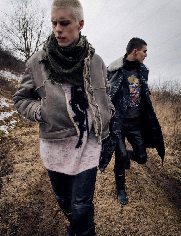 “Models August Gonet, Diego Villarreal, and Sara Cummings team up for Mud Life story coming from the pages of HERO Magazine‘s May 2016 edition. In charge of photography was Sebastian Kim, with styling from Gro Curtis, and casting direction by Douglas Perrett. Grooming is work of Valery Gherman.” – Malemodelscene.net