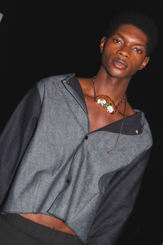 This backstage moment is exclusive to FY Magazine! Online, offering a rare look at the energy, texture, and surrealist edge that define the brand’s world.