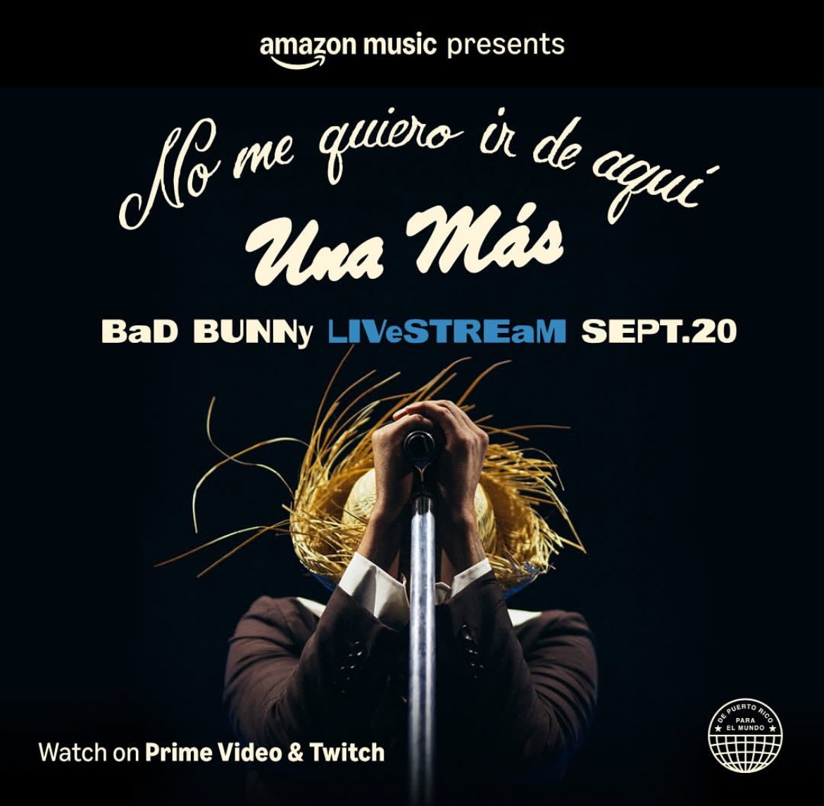 What started as a historic run of shows in Puerto Rico is now culminating in a surprise livestream performance, set to broadcast globally via Amazon Music, Twitch, and Prime Video on Saturday, Sept. 20 at 8:30 p.m. ET.