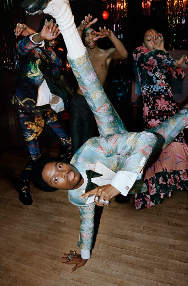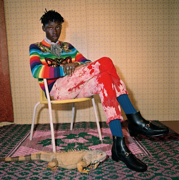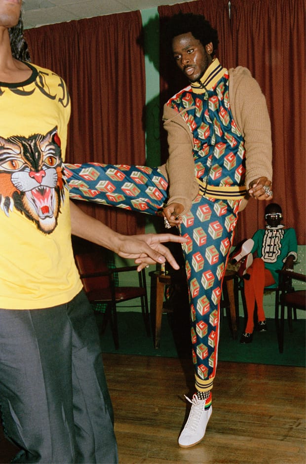 “Models Bakay Diaby and Keiron Berton Caynes star in Gucci’s Pre-Fall 2017 advertising campaign named Soul Scene captured by British fashion photographer Glen Luchford. In charge of creative direction was Alessandro Michele, with art direction from Christopher Simmonds.
