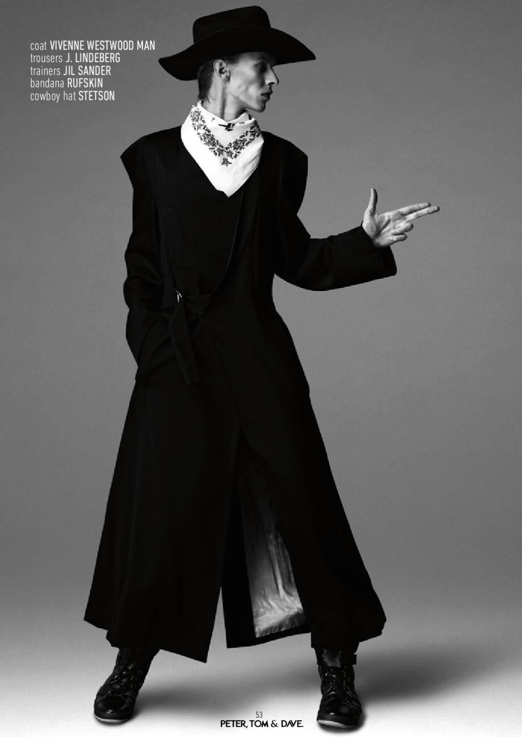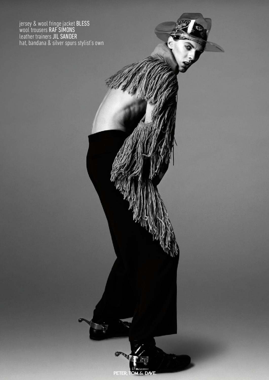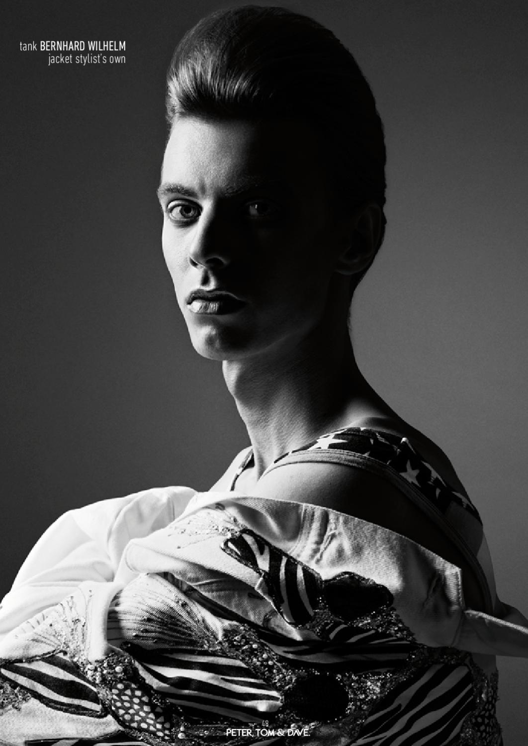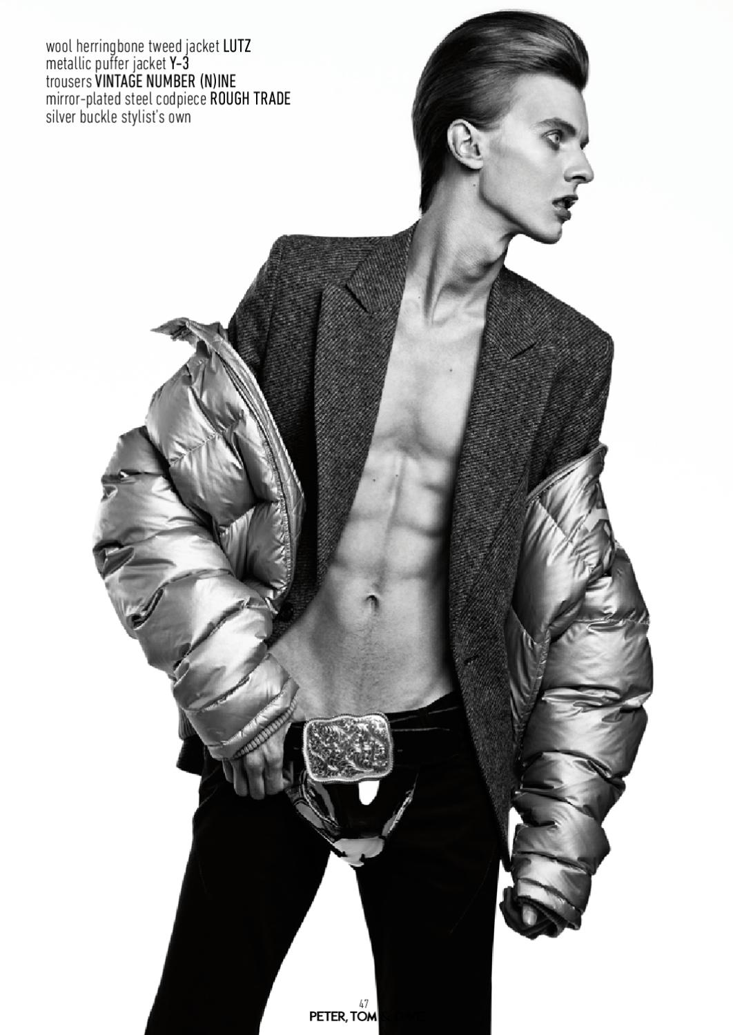 DNA’s latest find, Alexey Galetskiy, appears on the cover of Peter, Tom & Dave’s eighth issue shot by New York based photographer Richard Pier Petit. Eugene Ong transforms the Russian model into the Legendary Stardust Cowboy, a Rock n’ Roll performer from the 1960s whose style and look are akin to that of David Bowie. Courtesy of – hommemodel.blogspot.com