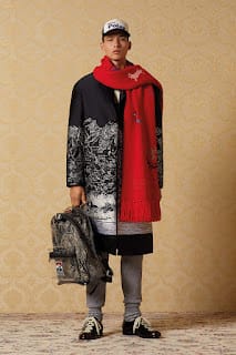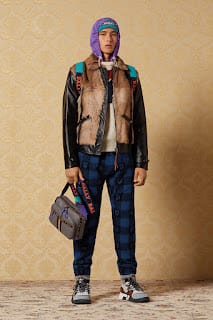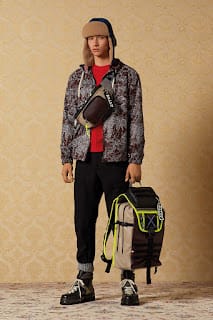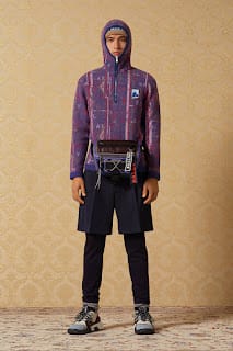 The collection, Peak Outlook, illustrates Bally’s celebration of Swiss heritage and the mountains. The Mountain Peak motif is central. Taken from a 1955 Bally logo, it becomes a zigzag shoe welt and appears graphically across ready to wear and accessories. A vintage 1930’s expedition map is restored in silk jacquard and ink-printed leather. Hiking boots are inspired by Bally’s 1930s and 40s archive.” – FY Magazine.es