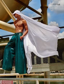 Styling is work of Calvin Nymon, who for the session selected pieces from Arthur Avellano, Atelier Neutre, Rives Paris, Nike, Calvin Klein, Pierre Cardin, Maison Montagut, Linda Farrow, Vinti Andrews, to name a few.”- Malemodelscene.net