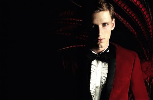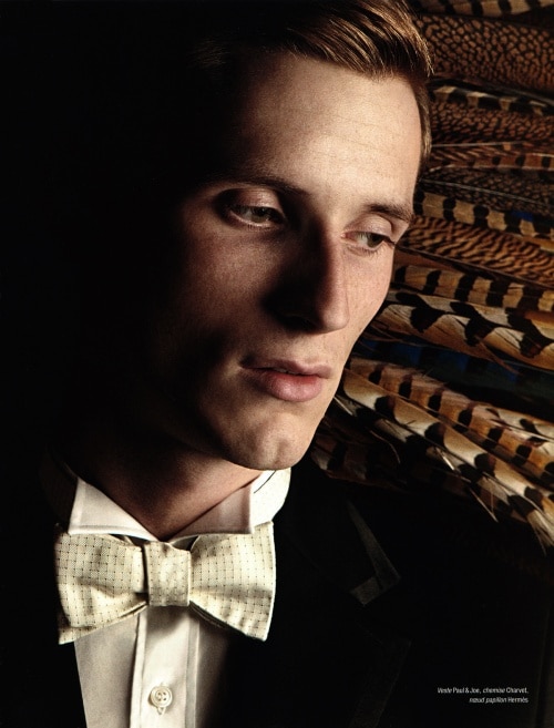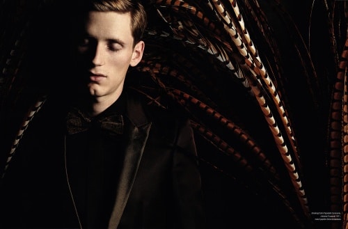 Photographer Milan Vukmirovic seems to have taken a liking to model Bastiaan Ninaber. In addition to shooting him for the current issue of L’Officiel Hommes Italia, Milan captured the Dutch model in the editorial ‘Cabaret’ for the main L’Officiel Hommes as well. -Homotography