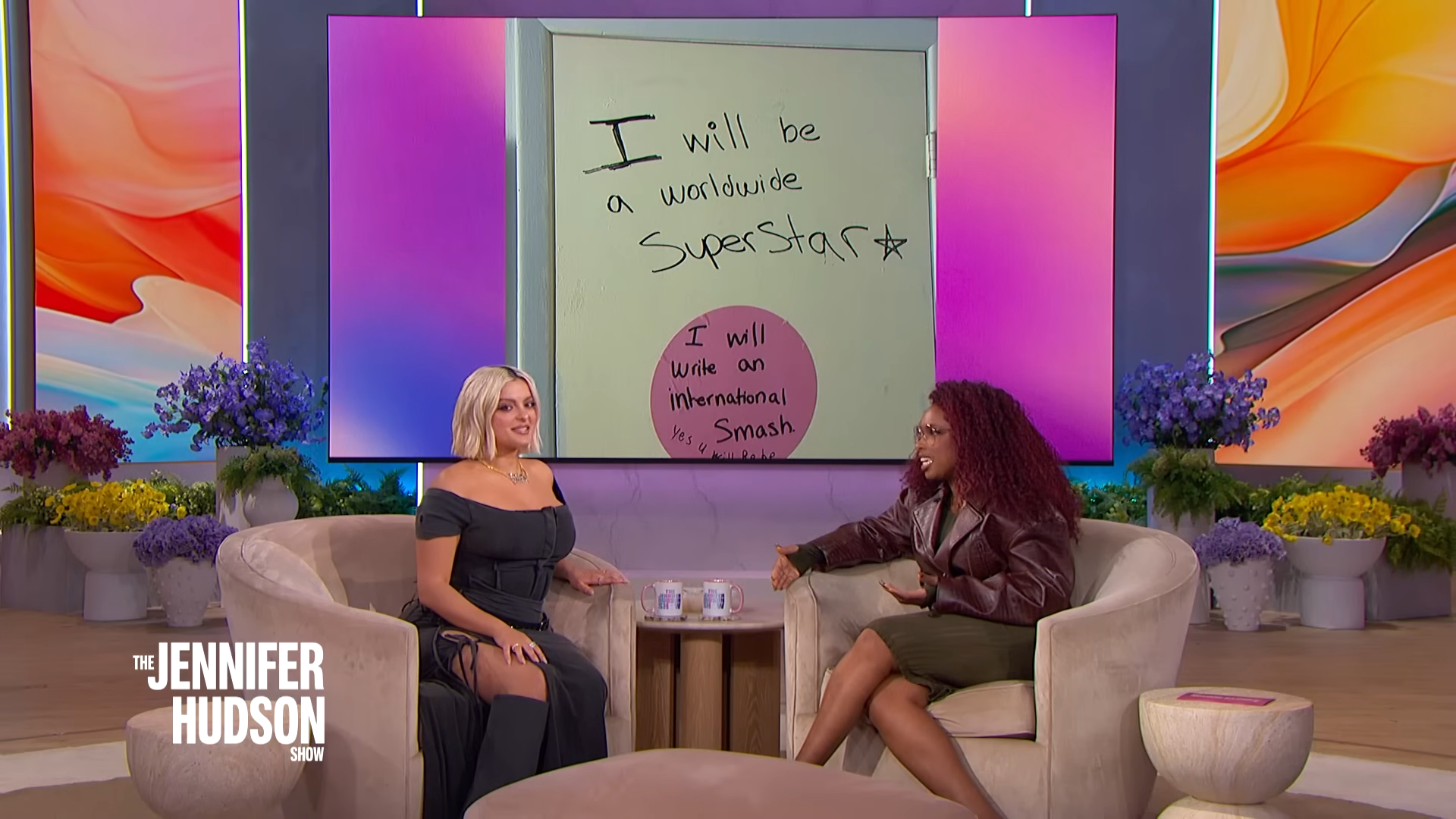 Bebe Rexha visits the Jennifer Hudson show to chit chat everything from manifestation, music, writing dreams on her door and putting her love life on the timeline.