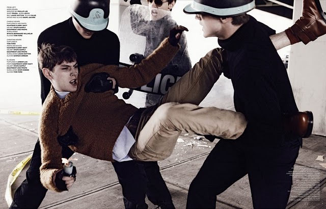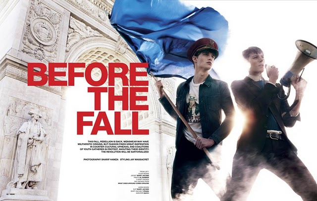 Aiden Andrews, Charlie Westerberg, Jules Hamilton and RJ King stage a protest in the pages of the new 22nd issue of VMAN. The story ‘Before The Fall’ is photographed by Sharif Hamza and styled by Jay Massacret. Courtesy of – Homotography