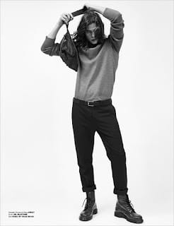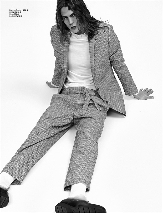 Styling is work of Christina Van Zon, who for the session selected pieces from Wood Wood, Richert Beil, Fred Perry, C.P. Company, Kiomi, Levi’s, Ermenegildo Zegna Couture, Tiger of Sweden, Asos, Aeance, Zign, Stance, Freitag, Arket, Dr. Martens, Hugo, Converse, Falke, Camel Active, and Jost.” – Malemodelscene.net