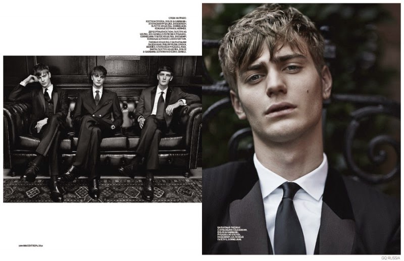 Fall Finesse-Models Ben Allen, Robert Laby and Yannick Abrath embrace a strong sartorial attitude as they star in a fashion editorial for the September 2014 issue of GQ Russia. Photographed by young fashion photographer Damon Baker, various lighting techniques are mixed as the models are captured in a posh pad. Outfitted by fashion editor Ekaterina Melnikova, the model trio wear dapper suiting from the likes of Dolce & Gabbana and Duchamp. Courtesy of – thefashionisto.com