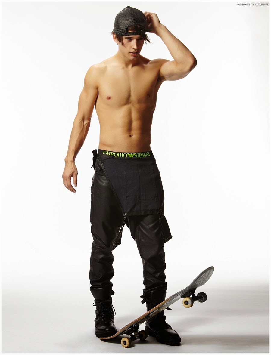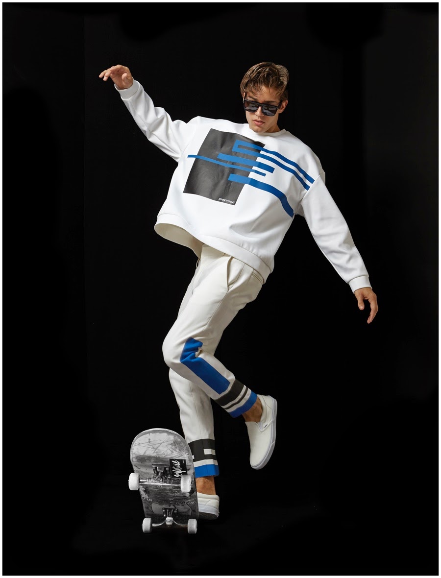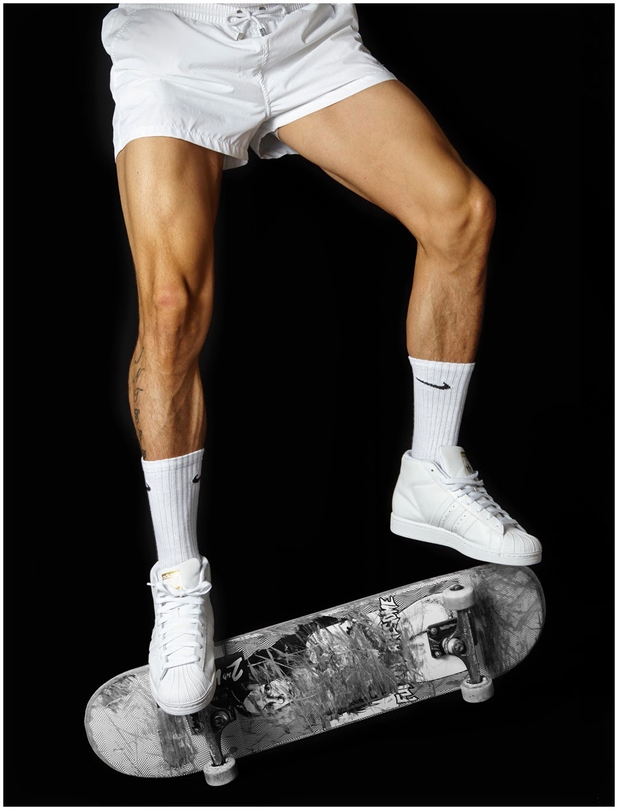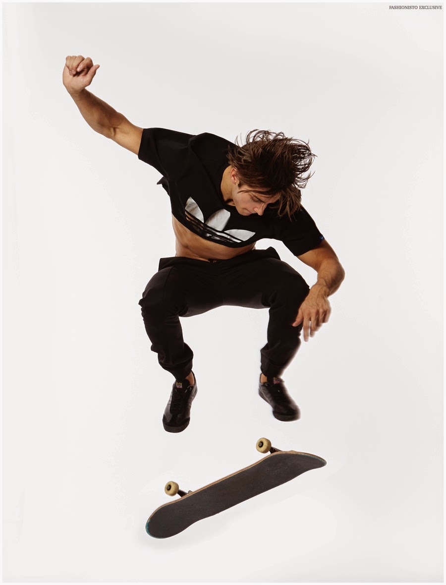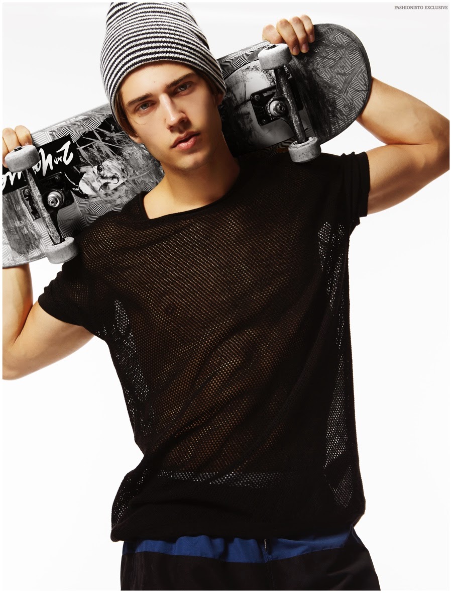 “Move over Brooklyn Beckham…there’s a new skater in town. We catch up with model Ben Bowers (New York Models Management) following an outing late last year. Channeling a cheeky skater boy style motif, Ben hits the studio with photographer Luzena Adams (Balloon Agency). Wearing a plethora of sporty, contemporary fashions from the likes of Adidas and ODD, Ben is outfitted by stylist Marc Sifuentes (Boy Castings). / Grooming by Isaac Davidson (Wilhelmina Artists).” – TheFashionisto.com