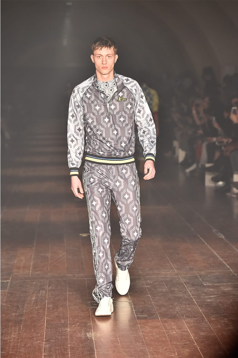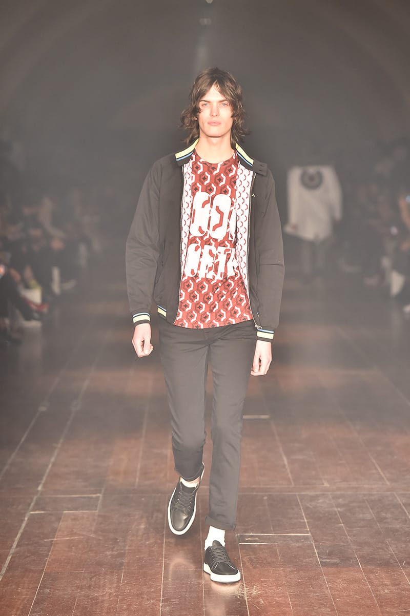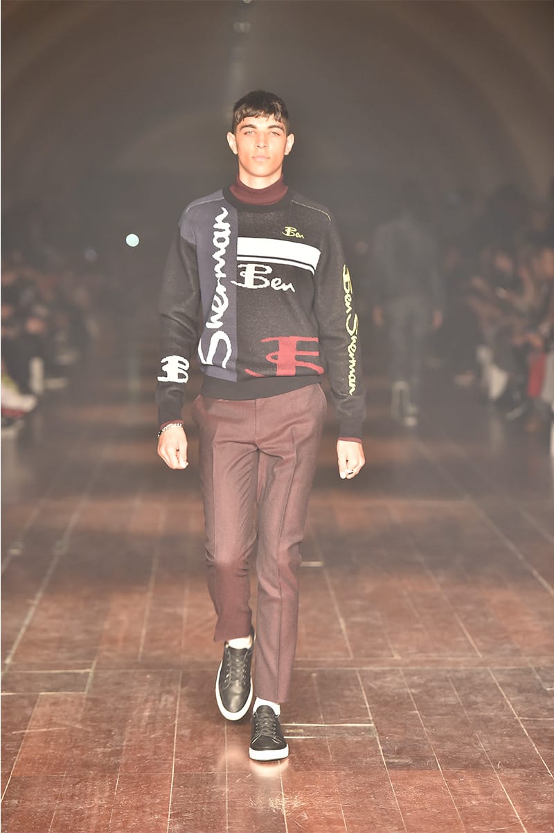 A mixture of formal – slick suits – and casual – printed sweatshirts teamed with trackpants featuring the now-renowned side stripes – were all displayed in the show, confirming Ben Sherman’s diverse collections, while still nodding to its preppy heritage.
