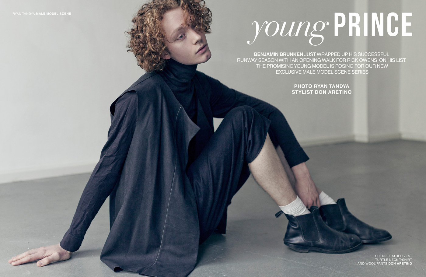 “BENJAMIN BRUNKEN just wrapped up his successful runway season with an opening walk for designer Rick Owens on his list. The promising young model is posing for our new exclusive MALE MODEL SCENE series captured by fashion and portrait photographer Ryan Tandya.” – Malemodelscene.net