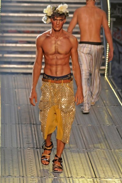 This is one of the most spellbinding shows Galliano has ever done on behalf of his menswear division over the past few seasons. The electrifying concepts and the “pure orgy of visuals and ideas would be hard to ignore.” Galliano’s extraordinary ideas are never compromised with his eponymous label.