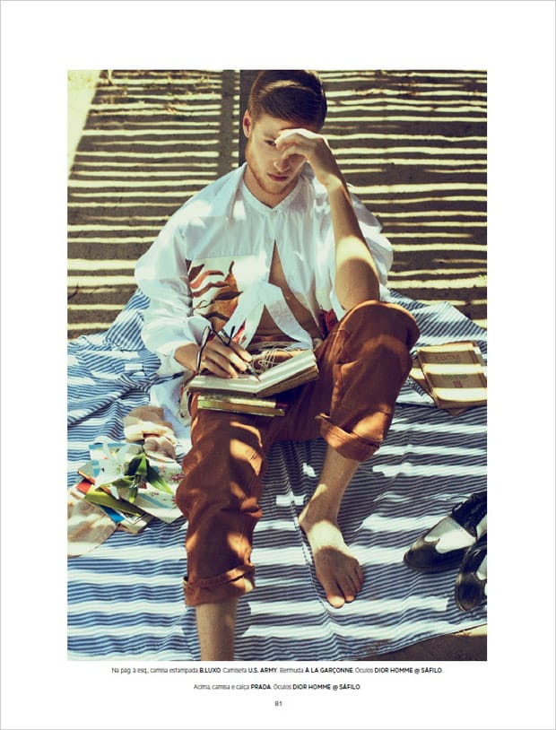 “Mateus Fini stars in Alem do paraiso story captured for L’Officiel Hommes Brazil‘s December 2016 edition by fashion photographer Gustavo Zylbersztajn. In charge of styling was Paulo Martinez, with beauty from Teo Miranda.” – Malemodelscene.net