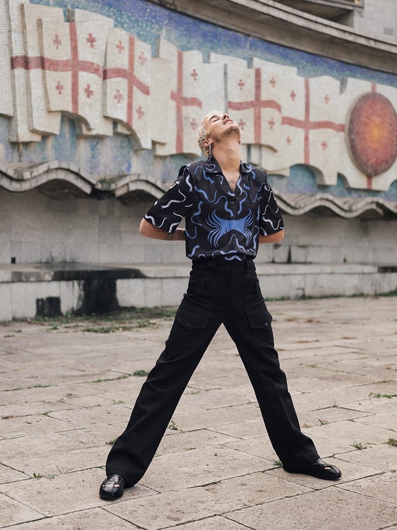 “Pito Seturidze and Gigi Tkhinvaleli shot by Marc Medina and styled by Dave Waldorf with pieces from Tamuna Ingorokva and Situationist, during Mercedes-Benz Fashion Week Tbilisi, in exclusive for Fucking Young! Online.