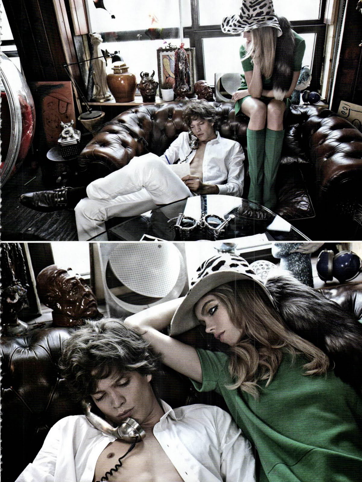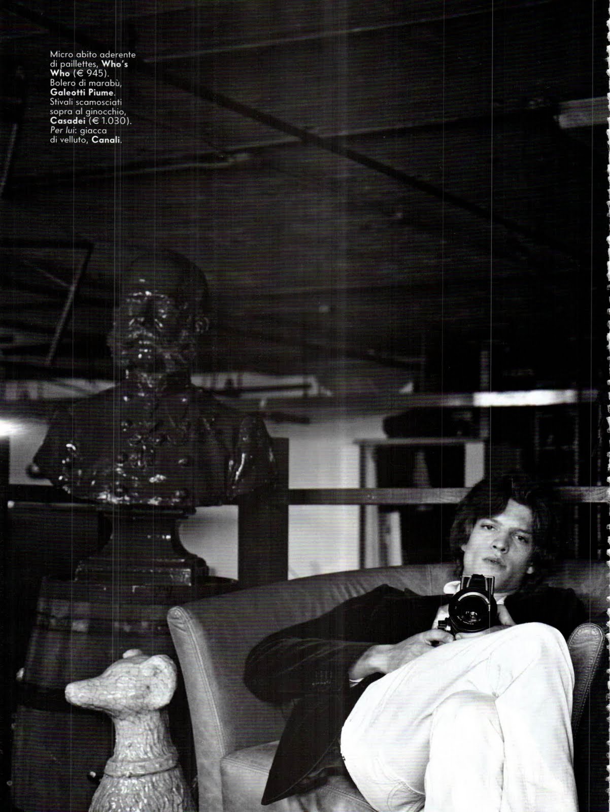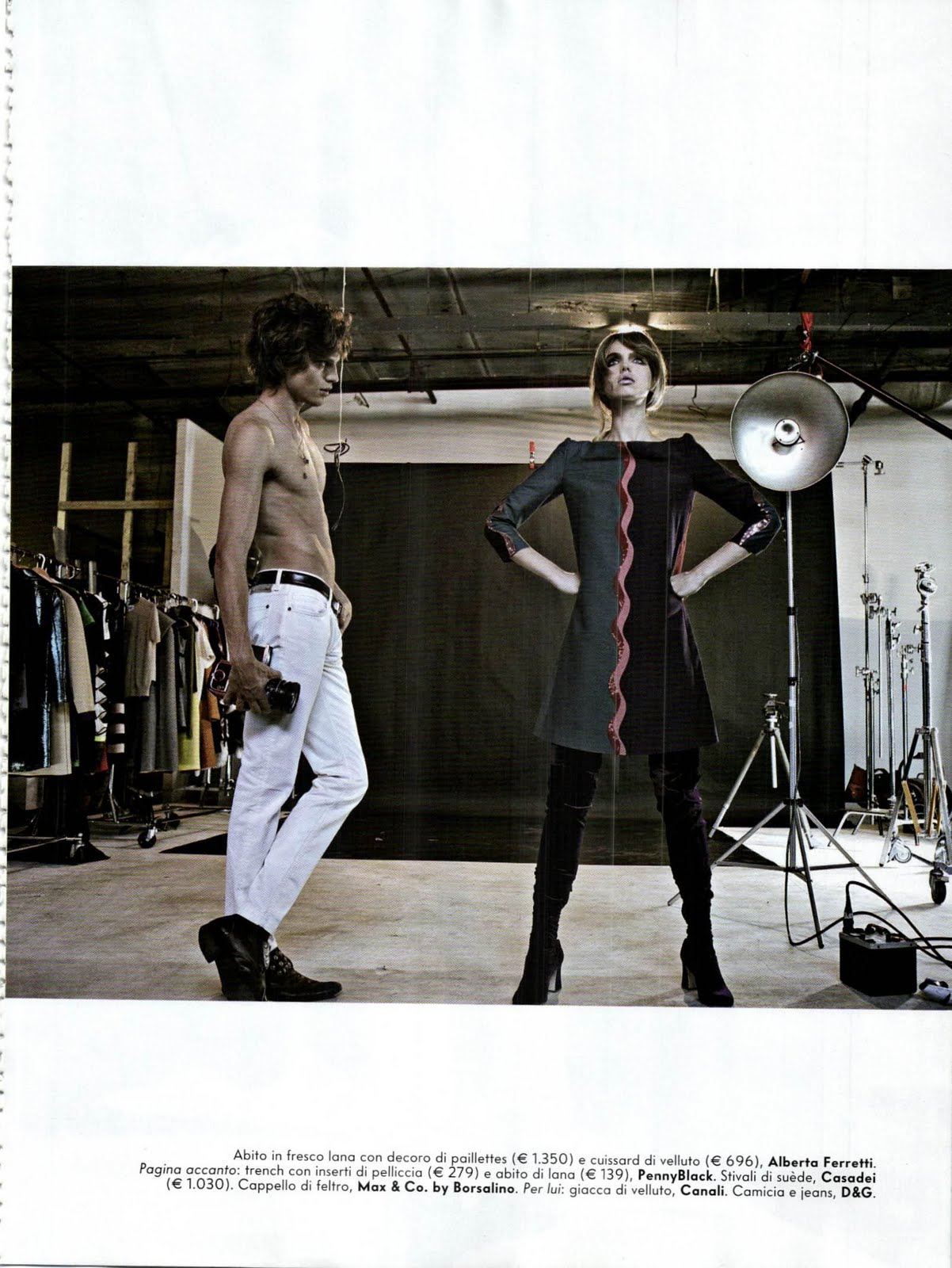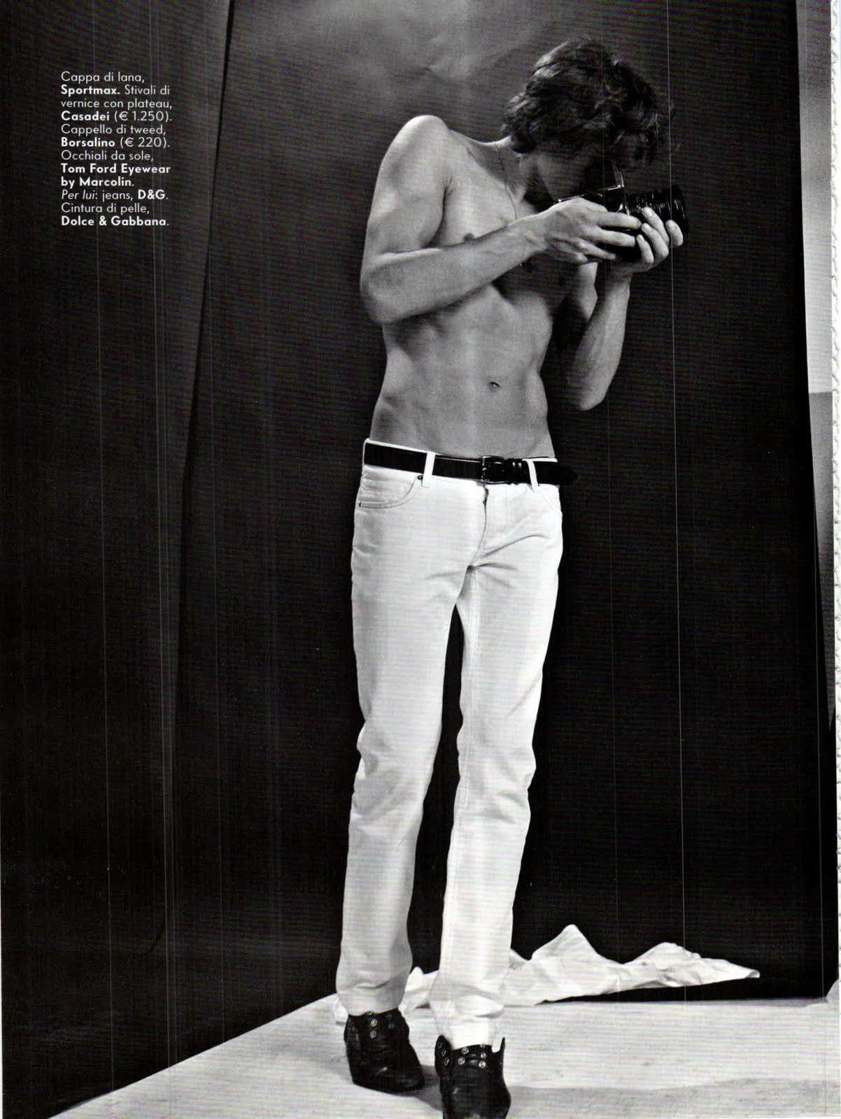 Photographer Tony Notarberardino uses studio props to simulate a shoot within a shoot for this editorial for Vanity Fair Italia with Jonathan Frenk. Anna Brambilla styles. Courtesy of – hommemodel.blogspot.com