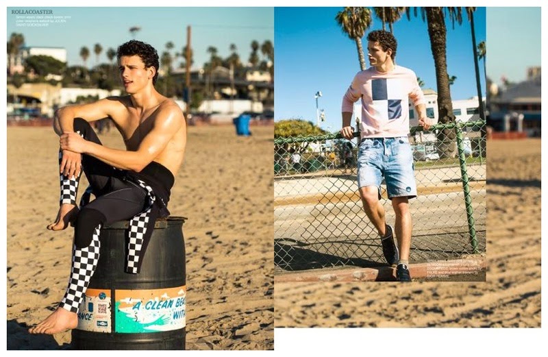 Leading Canadian model Simon Nessman connects with fashion photographer Greg Vaughan for the spring-summer 2015 cover story of English magazine Rollacoaster. Embracing spring in full force, Simon hits the beach in bright, youthful fashions. Outfitted by stylist Andrew Davis, Simon models pieces from Calvin Klein Collection, River Island, Moschino and more. Courtesy of – thefashionisto.com