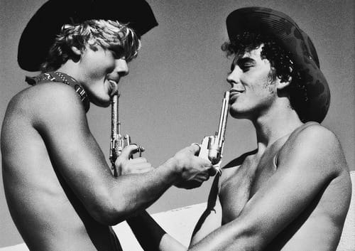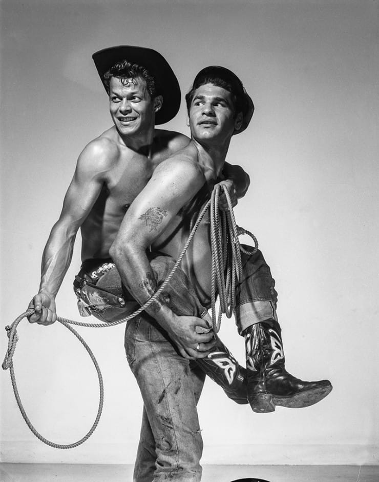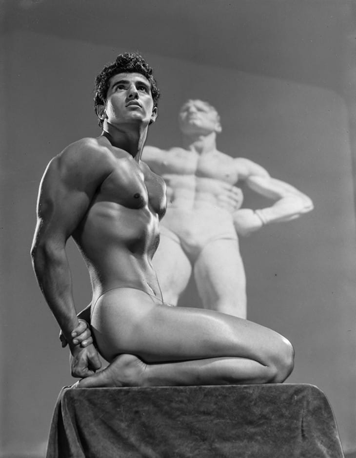 “In 1945 Bob Mizer began taking photographs of strapping young men on Muscle Beach in Venice, California. In December of that year he formed the Athletic Model Guild to market his photos, and “physique photography” was born. Before Mizer there were bodybuilders and men who photographed them, but AMG photos, even those of the same men, were different, subtly provocative, discretely aimed at a gay audience. They weren’t nude, but showed as much as the law allowed in 1945.” – FY Magazine.es