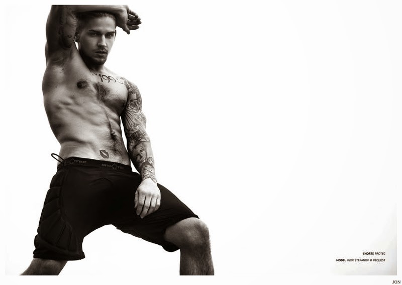 After connecting with British model Callum Ball for a striking shoot, photographer Brent Chua turns his attention to Igor Stepanov for a new JON contribution. Loosely clad in active essentials from Y-3 and more, Igor appears before Chua’s lens, going shirtless as he reveals his many tattoos. Courtesy of – thefashionisto.com