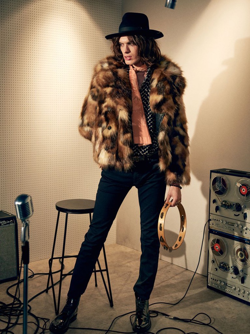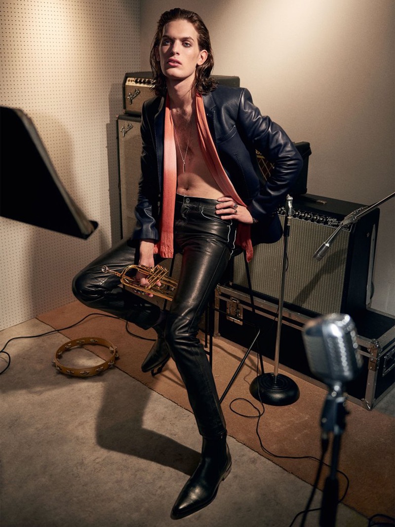 “Harrods magazine channels a rock ‘n’ roll edge with one of its latest editorials. Jake Walters photographs model Lorenzo Sutto for the fashion shoot. Stylist Tom Stubbs takes inspiration from music legends such as The Rolling Stones and Sex Pistols. Stubbs outfits Lorenzo in timeless pieces like leather pants and skinny fit trousers. Lorenzo inspires in a wardrobe, which features luxury labels such as Fendi, Dunhill, and Givenchy.” – TheFashionisto.com