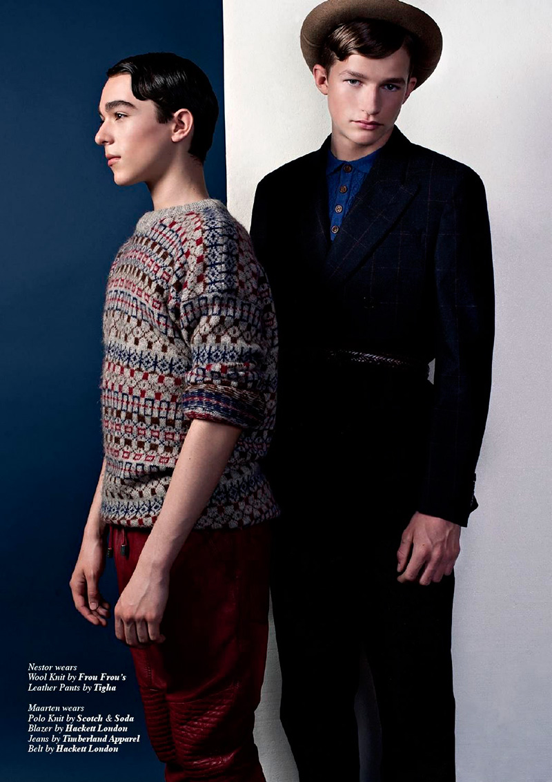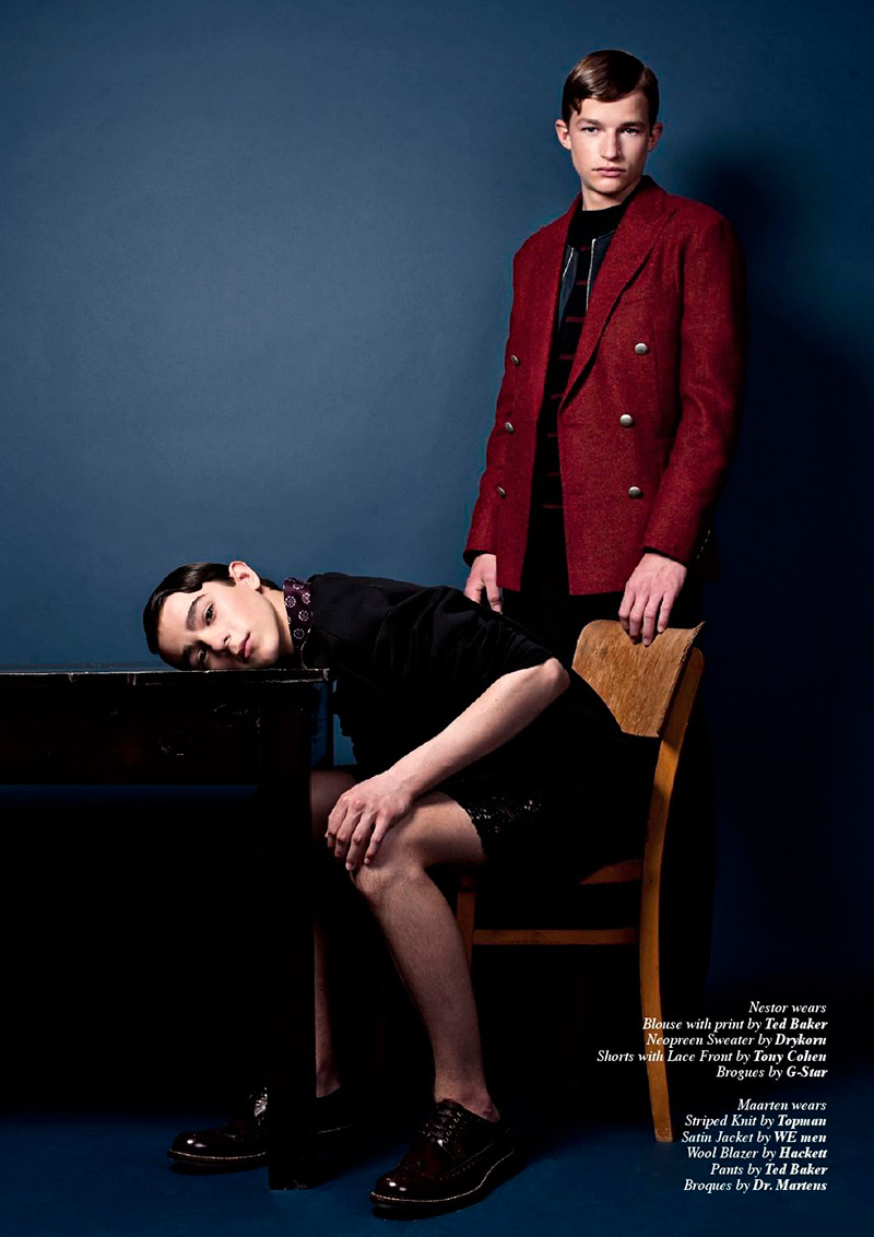 “Maarten R. and Nestor Tsakirakis shot by Nadja Pollack and styled by Elise Verhoeven, for the latest issue of Client Style Guide. Hair & Make-up: Hanan Chahid.” – FY Magazine.es