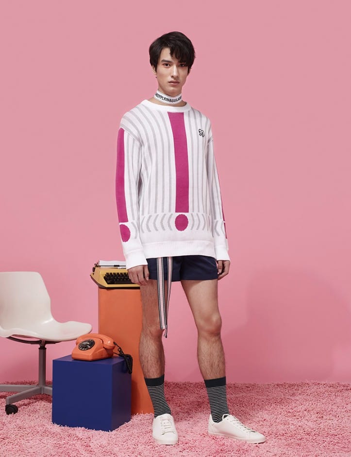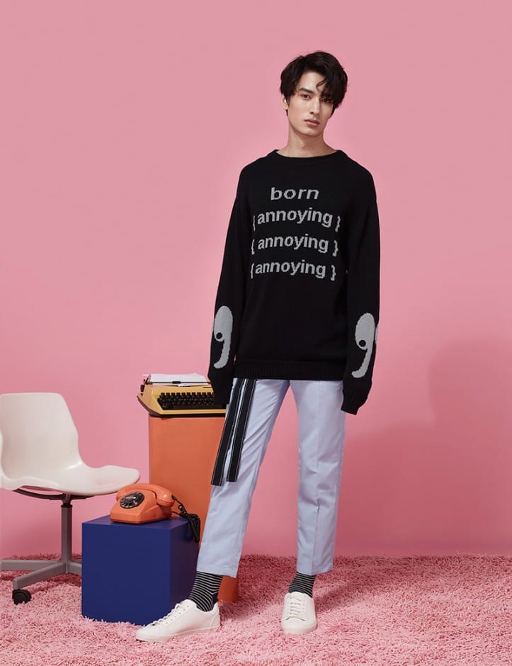 The collection’s core juxtaposes the idea of how powerful words can be with the remarks on how irritating and destructive they can, on the contrary, become as well. Design-wise, the silhouettes through the collection lay an emphasis on the brand’s strong personality with something along the lines of bold statement sweaters, knitwear and jackets, oversized tees adorned with applique detailings, and some double-breasted trench pieces, leaving traces of minimalism and facified streetwear at the same time. Dabbed with tongue-in-cheek humor and satirical connotations, certain typographical symbols, such as exclamation marks, parentheses and quotation marks, are designed to hint at the indiscreet manner of word utterances, drawing parallels to the notion of a distorted acknowledgement of freedom of speech with people solely standing up for their supposed rights to speak but ignoring to respect or listen to others’ opinions.